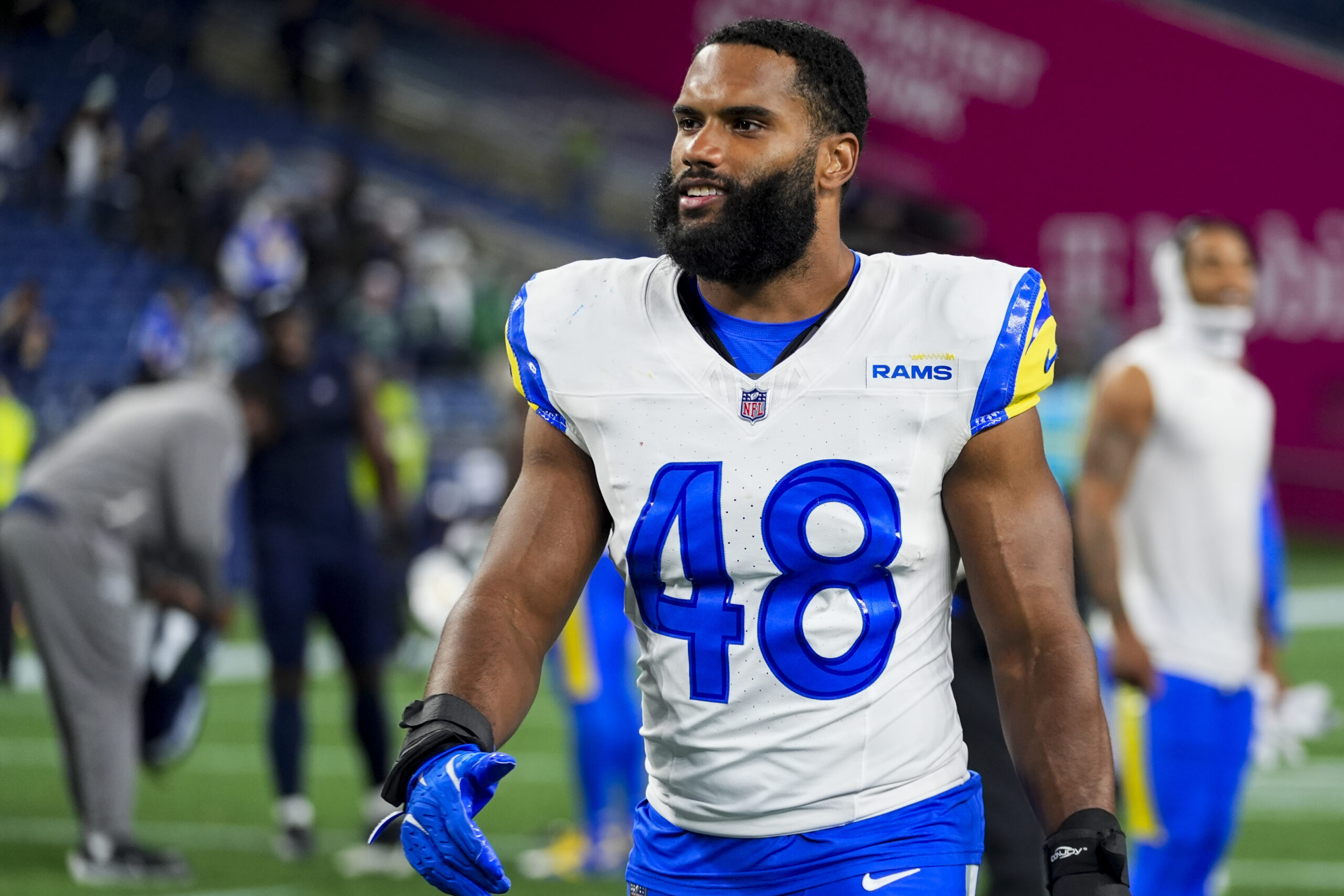 ILB Troy Reeder, 31, is from Hockessin, Del., approximately 10 miles west of Wilmington. He spent his college career at Penn State (2014 and 2015) and Delaware (2016 to 2018). Reeder signed with the Rams as an undrafted free agent in 2019 and won a Super Bowl with the team in 2021.