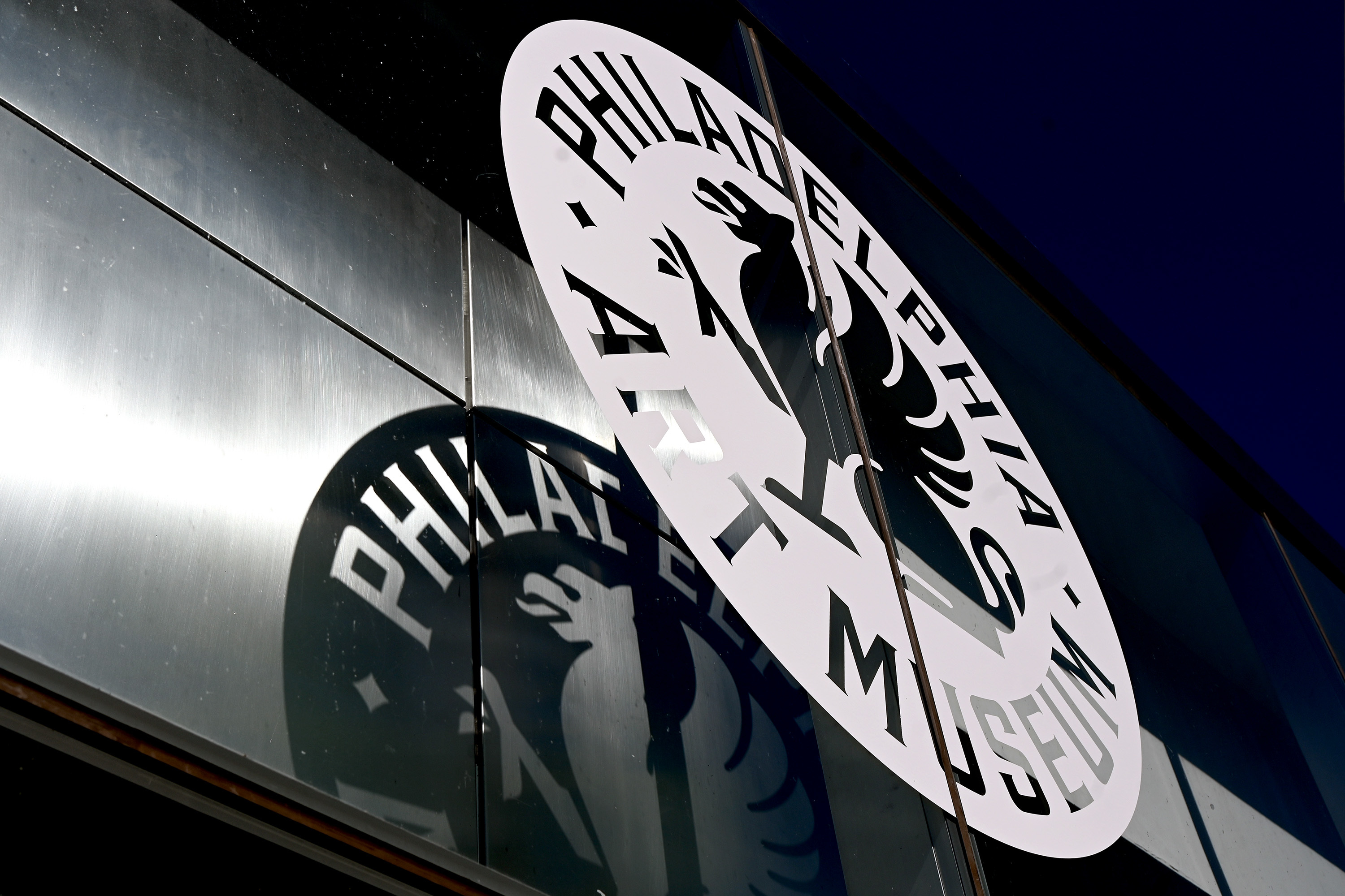 A sign shows the recent rebranding of the Philadelphia Art Museum.