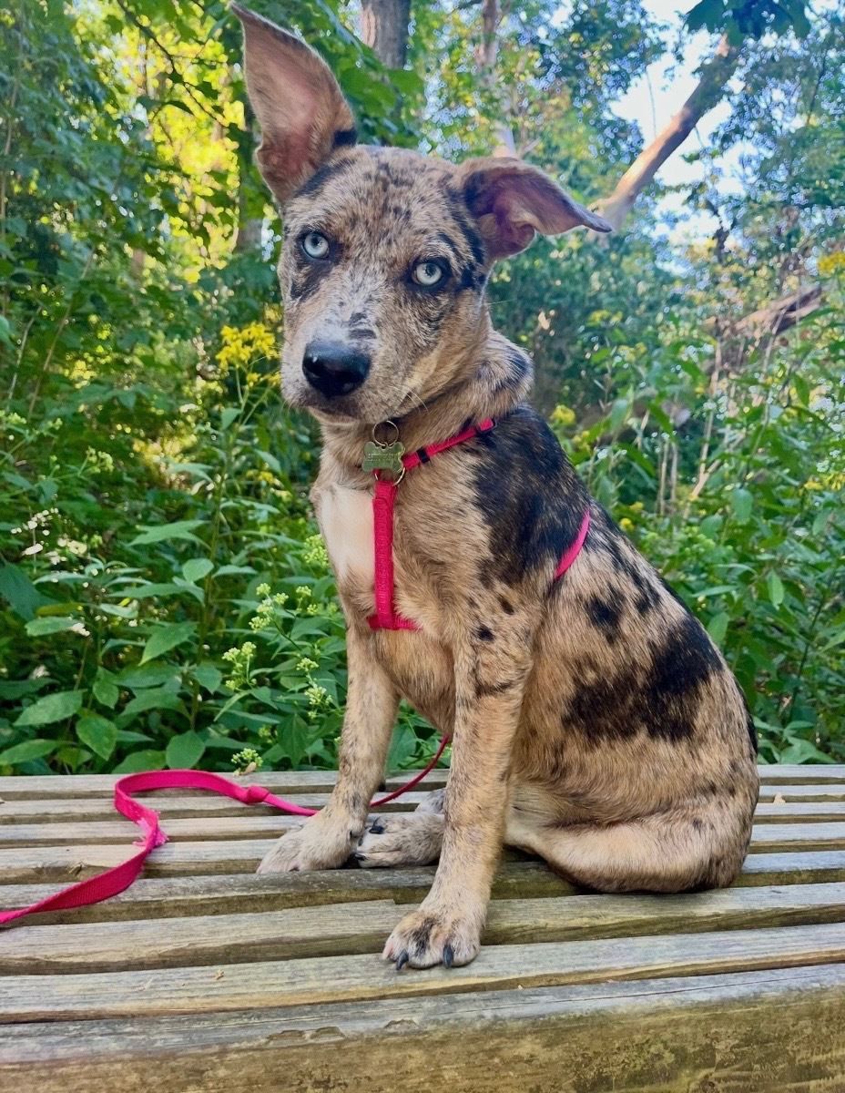 Carrie Pawshaw sits for a portrait. Pawshaw, a rescue dog from the Pittsburgh region, competed in the 2026 Puppy Bowl.