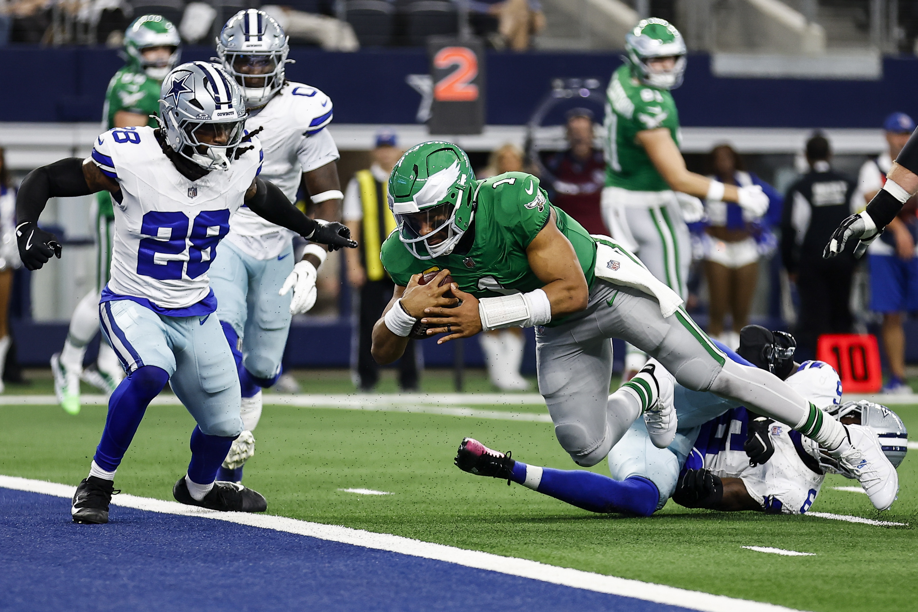 “The shutout wasn’t pretty — and I wouldn’t say that this offense is close to fixing its problems yet — but quarterback Jalen Hurts was efficient in a way that’s been missing from the offense lately. For that alone, I can begrudgingly give the Eagles a passing grade for the week.”