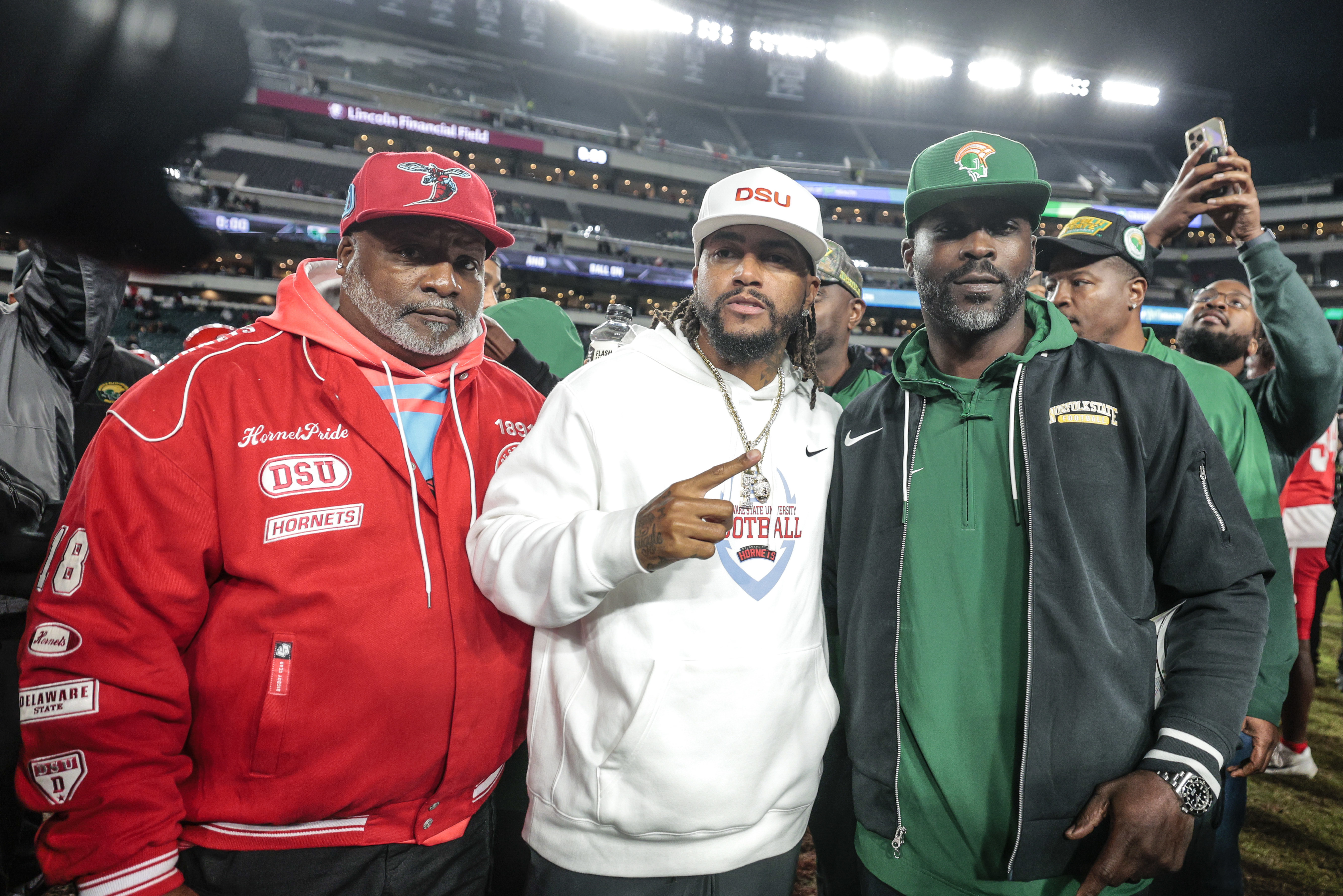 Although the Eagles are on their bye week, Lincoln Financial Field was put to good use on Thursday night. Delaware State, coached by former Eagles receiver DeSean Jackson, hosted Norfolk State, coached by former Eagles quarterback Michael Vick.