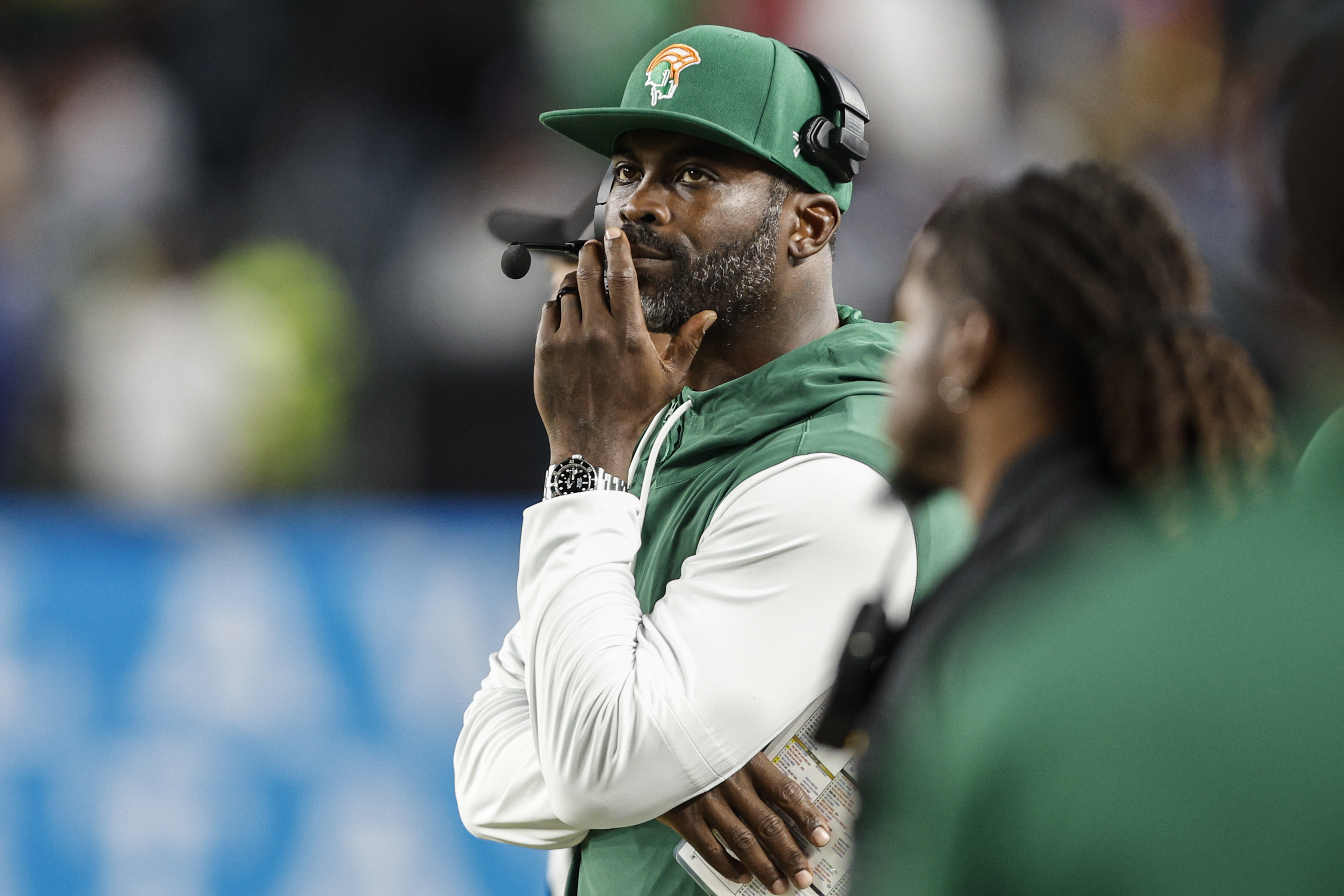 Norfolk State head coach Michael Vick watches in the waning moments of his team’s loss to Delaware State in Thursday night’s HBCU showdown at Lincoln Financial Field.