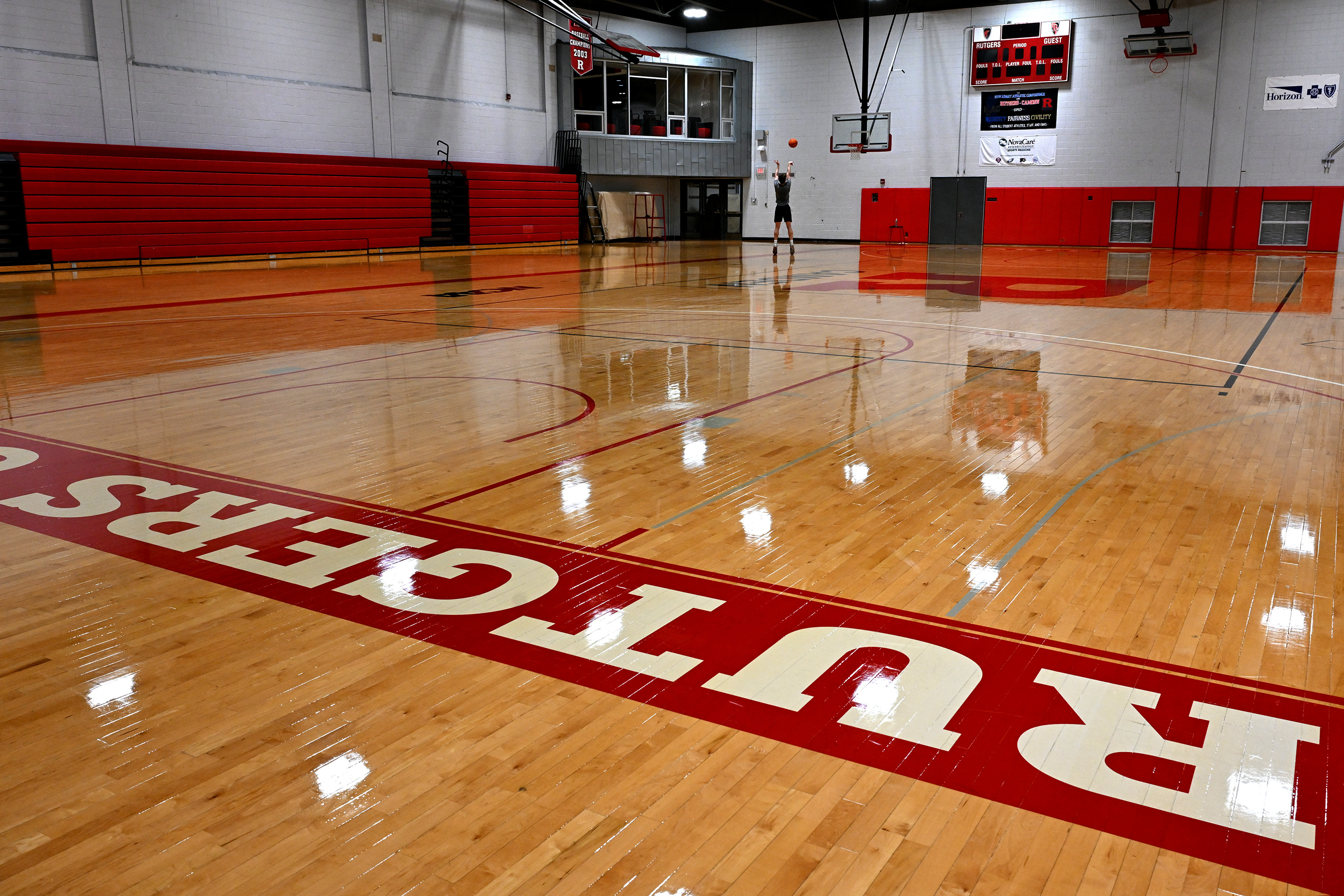 Rutgers-Camden sophomore basketball forward Robert Peirson from Toms River practices in the gym in the Athletic & Fitness Center.