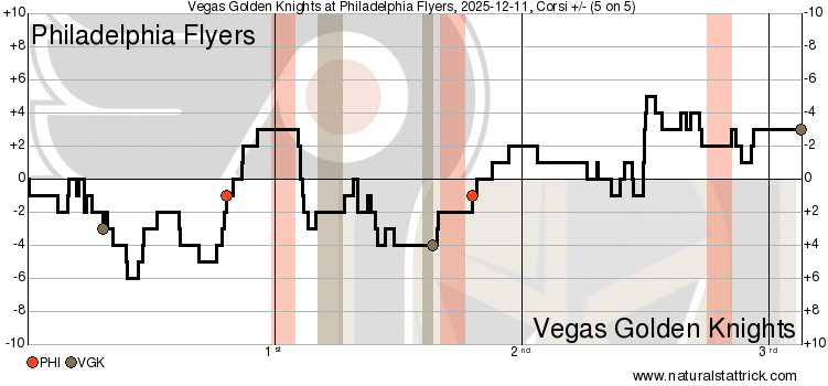He also led the team with six scoring chances. None came during five-on-five play. Most came during six-on-five action — the Flyers scored both goals at this strength, one on a delayed penalty and the second with the goalie pulled.