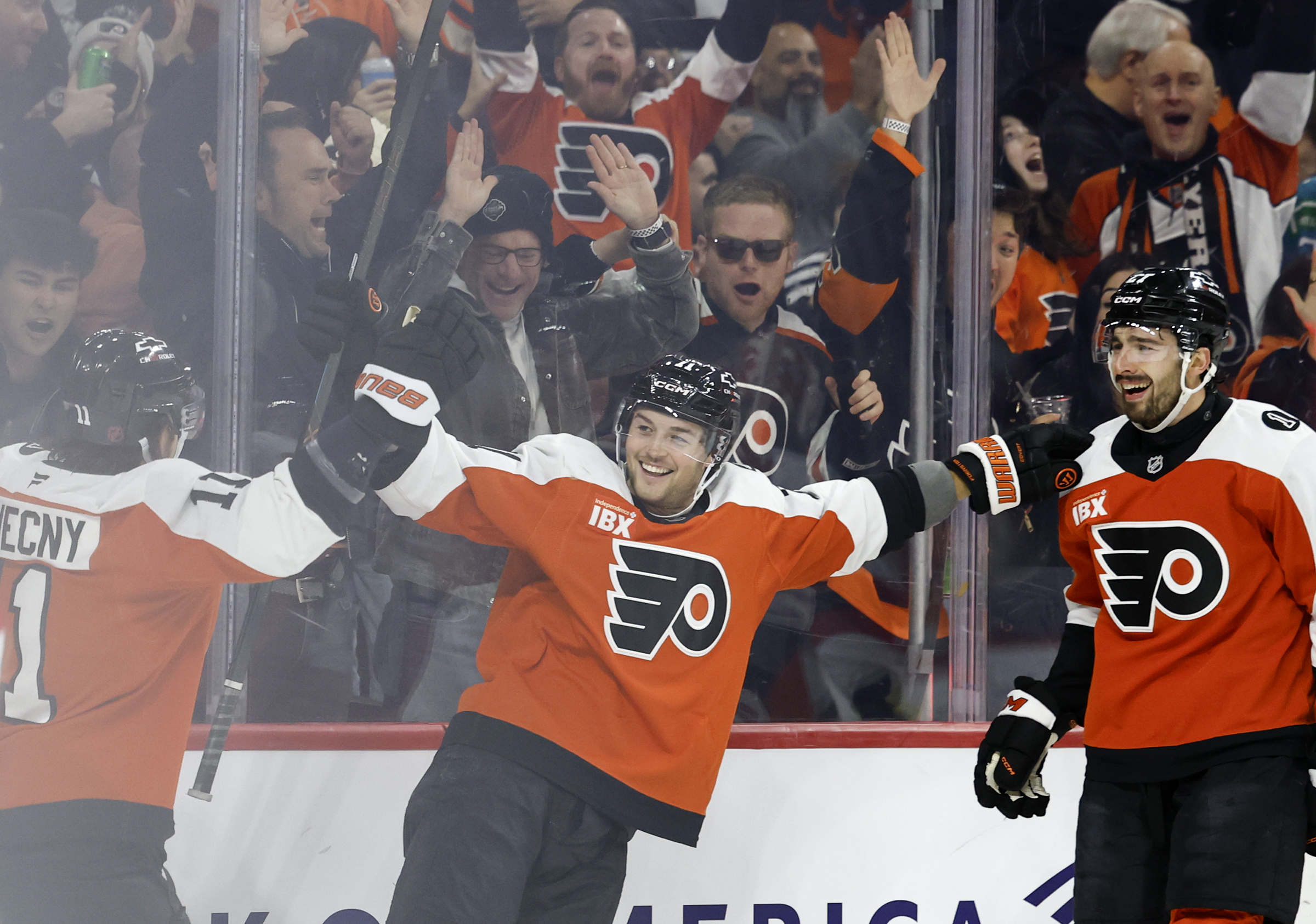 Within 19 seconds, the Panthers put six shots on Dan Vladař, with another hitting the crossbar. The Flyers got the puck out, and at the other end, Nick Seeler had his stick break on a point shot, creating a turnover.
