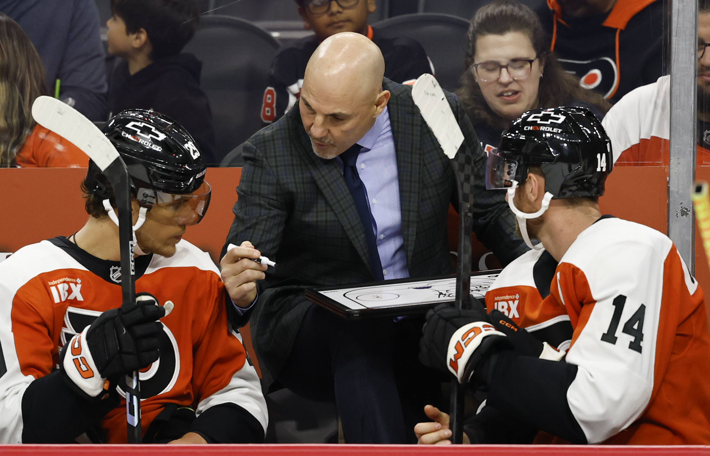 Couturier’s goal came off a heads-up play by Christian Dvorak to put the puck on net. Up by a goal, Tocchet also had Noah Cates on the ice, and the center was ready to pounce just in case.