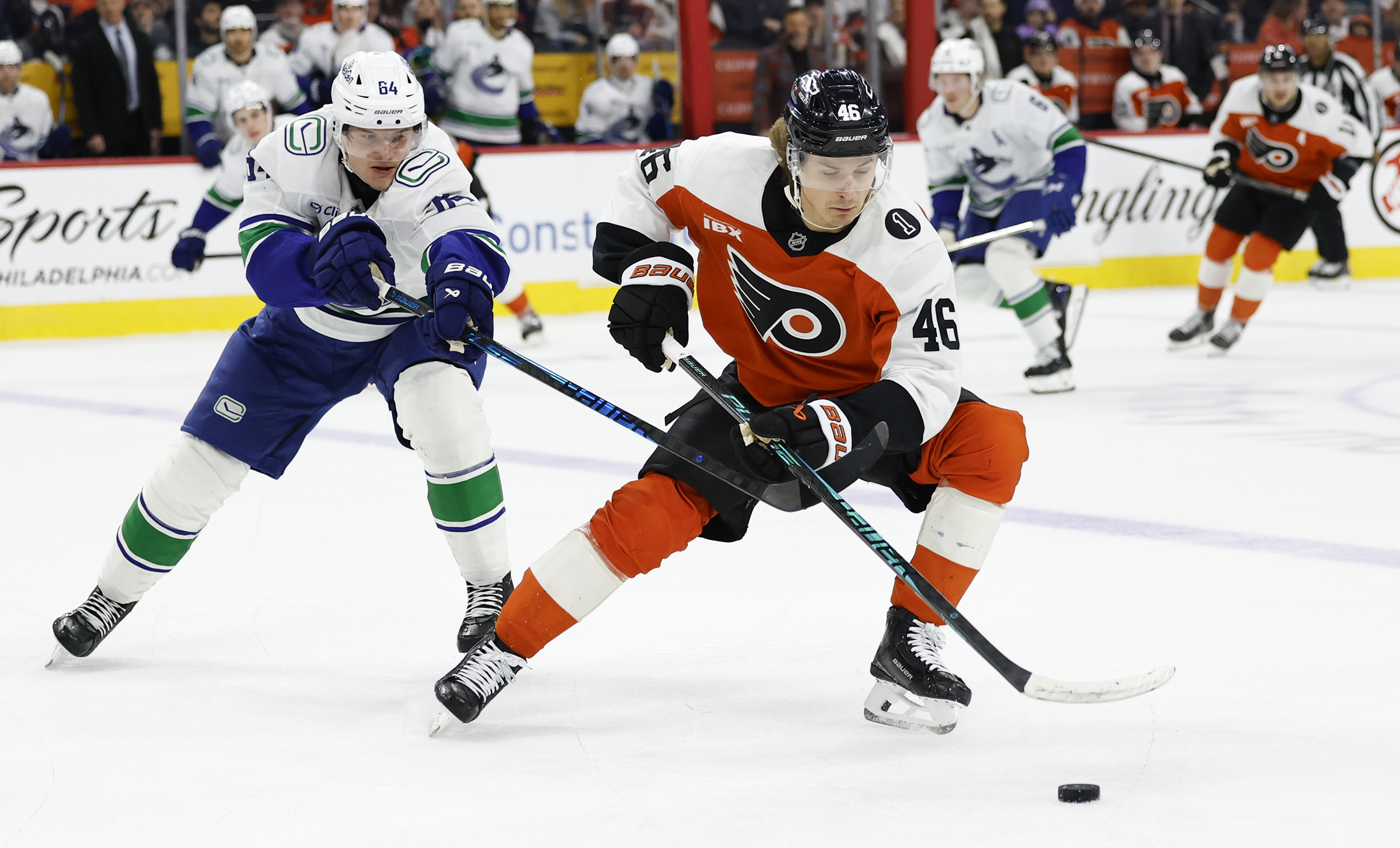 The Sixers had the night off Monday, but guard Quentin Grimes was at Xfinity Mobile Arena anyway. He was watching his half brother, Tyler Myers, play for the Canucks against the Flyers. Grimes and Myers are the only pair of brothers to ever play in the NBA and NHL. Gabriela Carroll has the story of their Christmastime reunion.