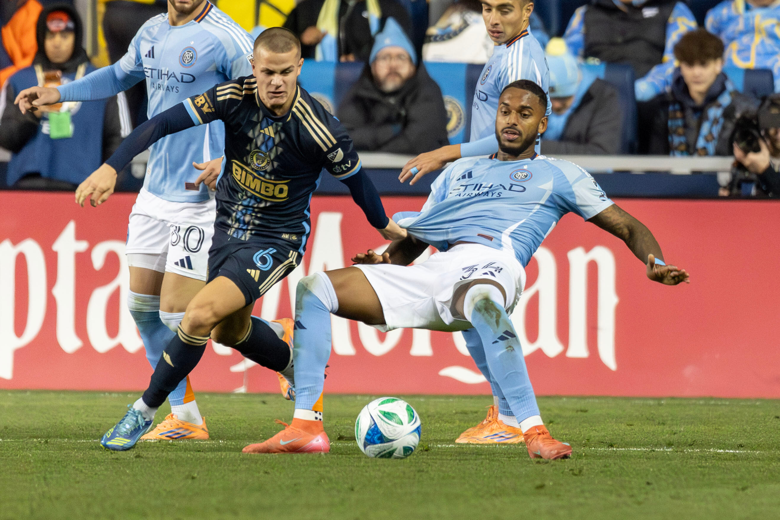 For almost all the time until then, a New York squad, whose leading striker Alonso Martínez and key midfielder Andrés Perea were out injured, sat back and defended. That also wasn’t surprising, but the Union kept falling into the Pigeons’ traps. Play up the middle repeatedly fizzled out, and New York repelled almost all of the Union’s repeated crosses. When the Union tried shooting from range to try to break things up, all but one of the attempts were off-target.