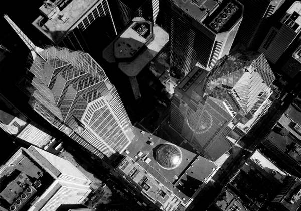 An aerial view of One Liberty Place, the Shops at Liberty Place, and Two Liberty Place taken during 1990.