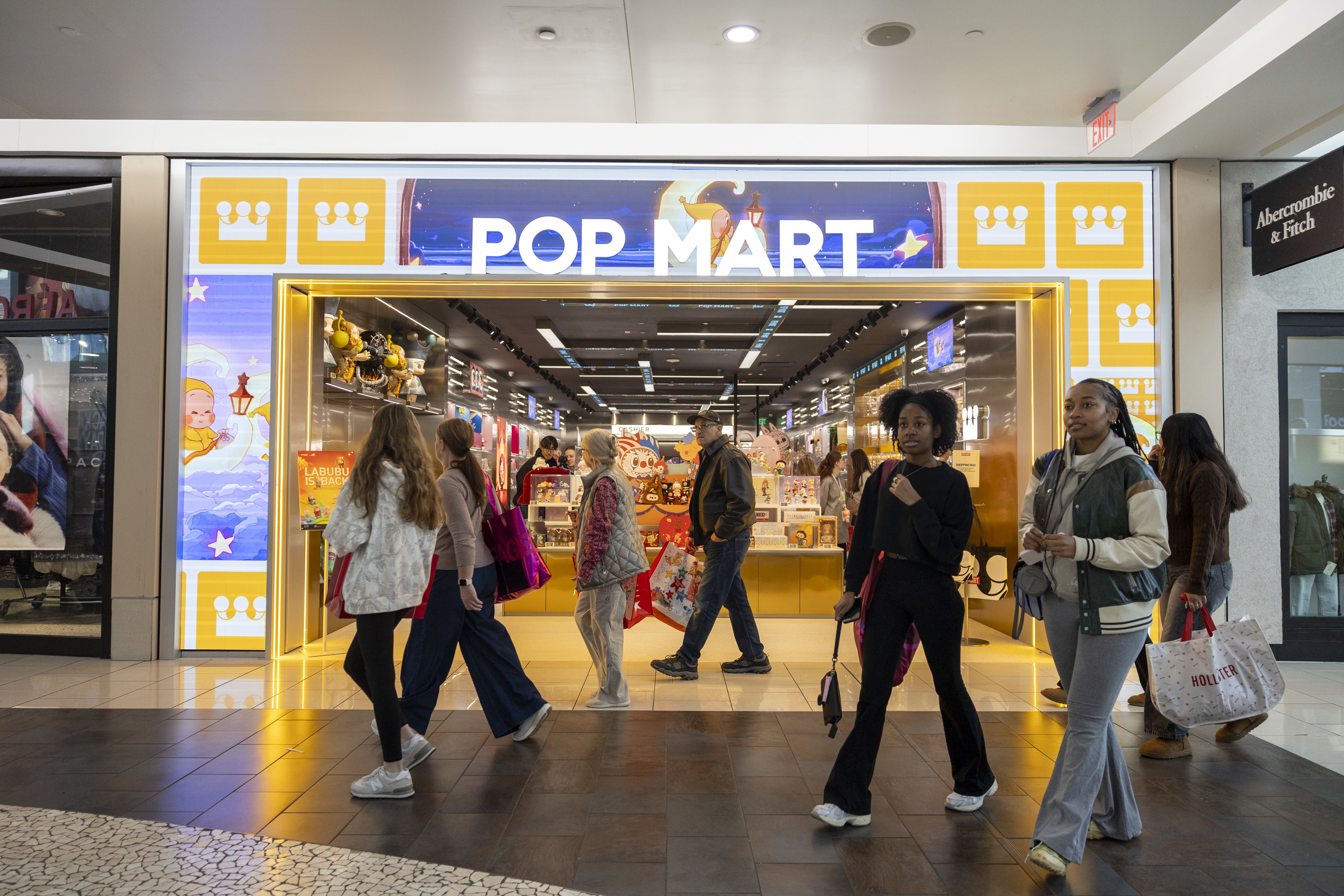 People walk pass Pop Mart during their shopping on Black Friday at the Cherry Hill Mall in Cherry Hill, N.J., on Friday, Nov. 28.