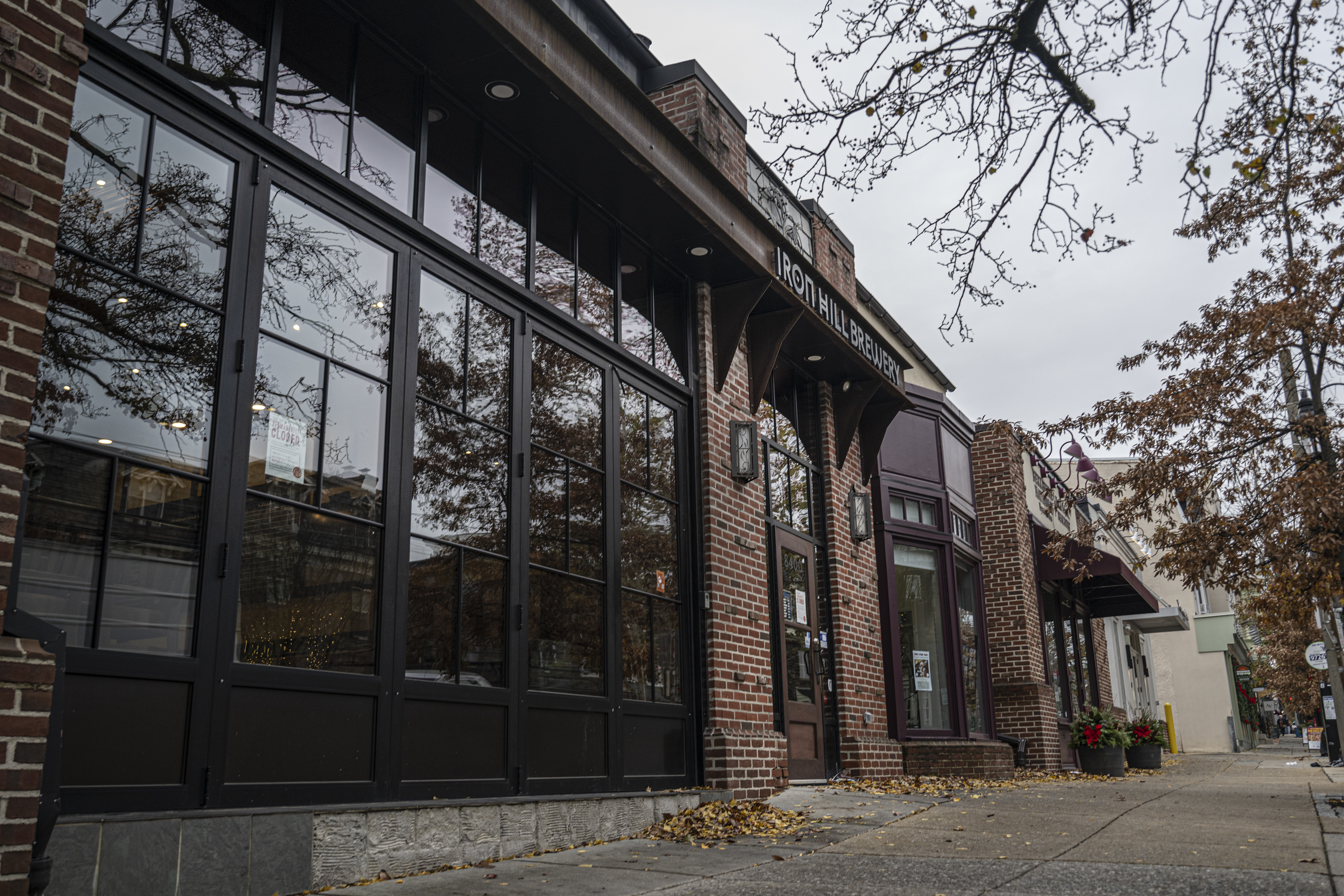 A view down Germantown Avenue from the Chestnut Hill SEPTA Regional Rail station.The closed Iron Hill Brewery is shown in downtown Chestnut Hill on Nov. 19.