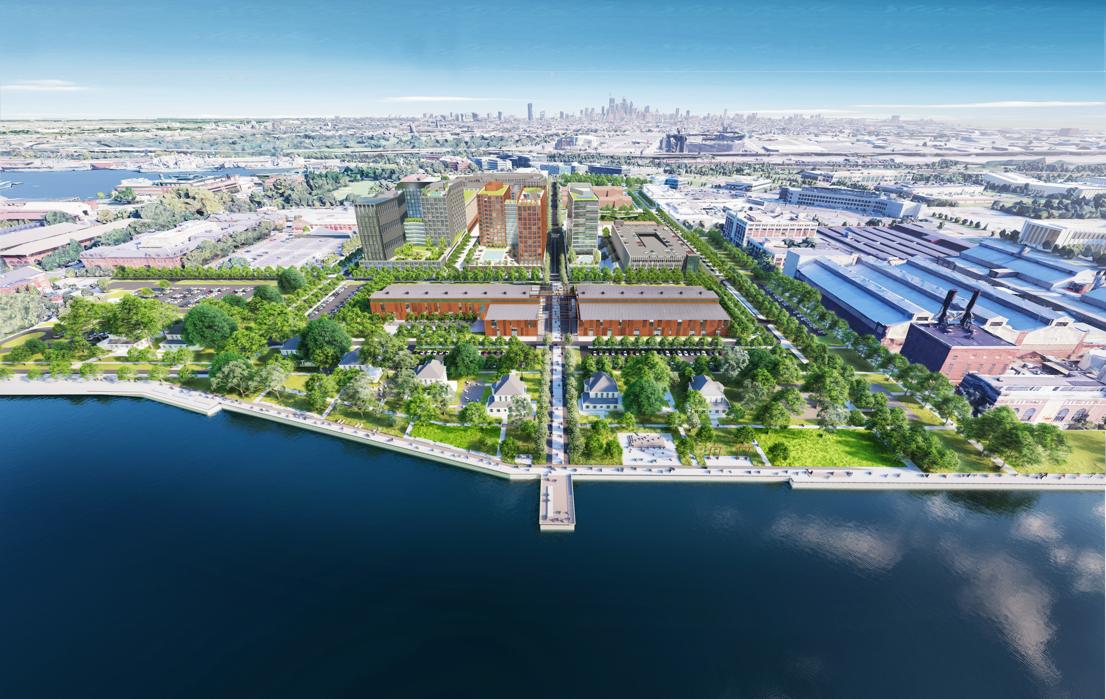 An artist’s rendering shows an aerial view of the proposed development plan for the Navy Yard.
