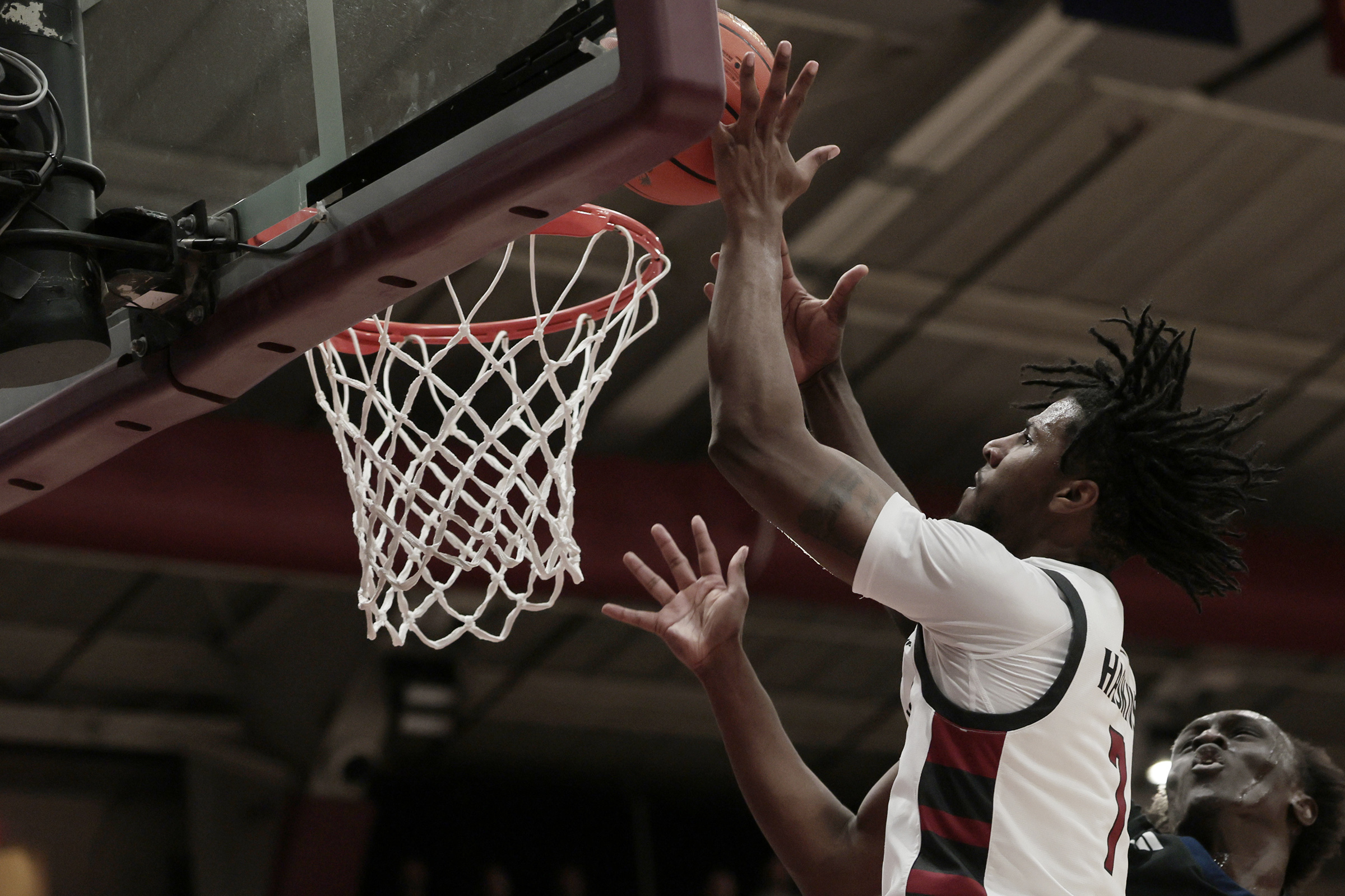 Glover-Toscano drilled a three and Simpson found Haskins for an alley-oop to send Hagan Arena into a frenzy. Then both got steals, leading to a dunk and a behind-the-back layup to push the lead up to as much as 14.