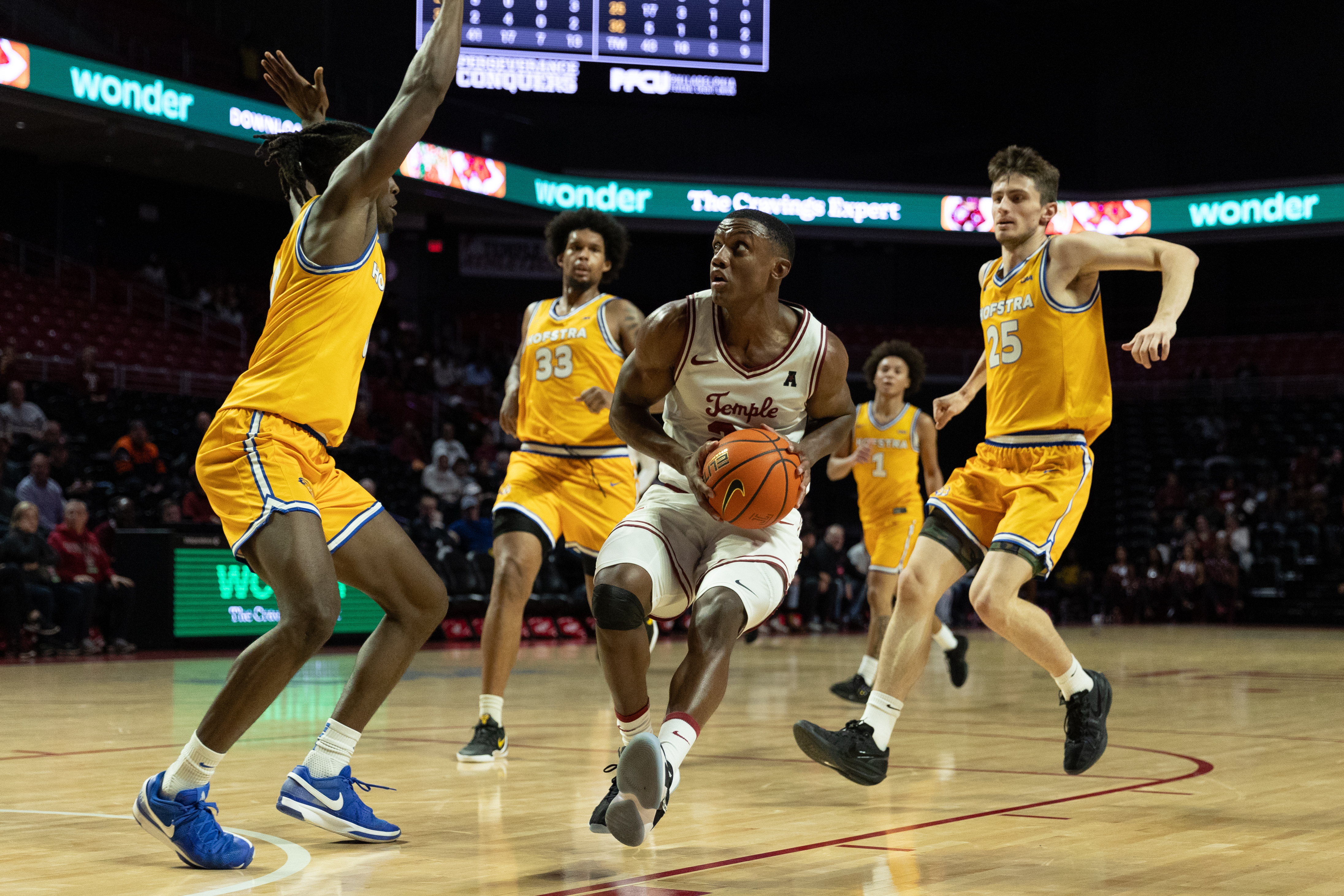 He’s reached double digits in each of the Owls’ four games, and when his shots are falling, it has put Temple in an offensive groove. He also knocked down three consecutive three-pointers in the last three minutes against Boston College on Nov. 15, which gave Temple a fighting chance — despite falling 76-71.