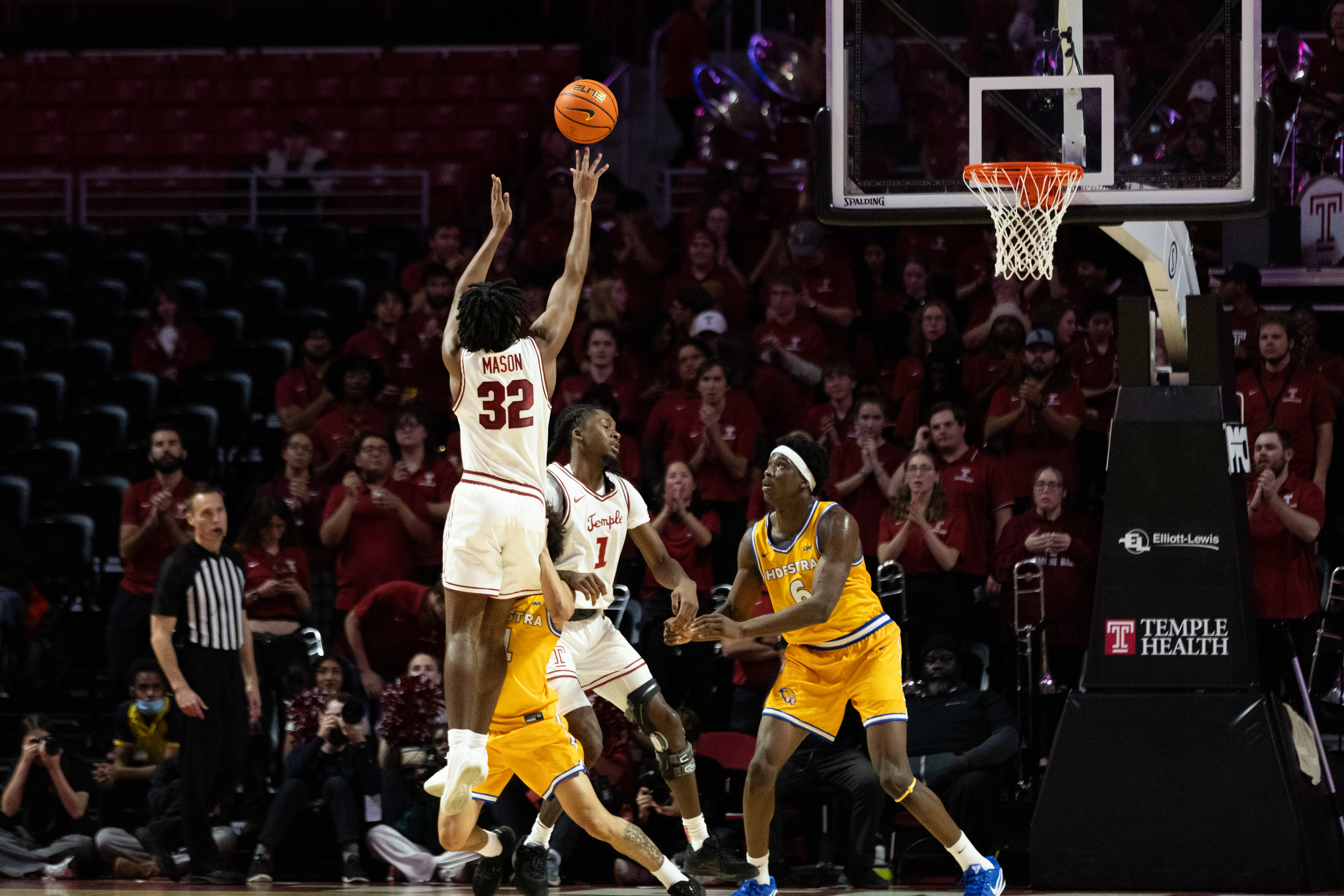 The 6-foot-7 former Nebraska guard soared to the hoop from a lob by forward Babatunde Durodola, slamming it home for Temple’s first points. He ended his Owls debut with 16 points and had another dunk, earning him the nickname “LeBron Frames” on social media.