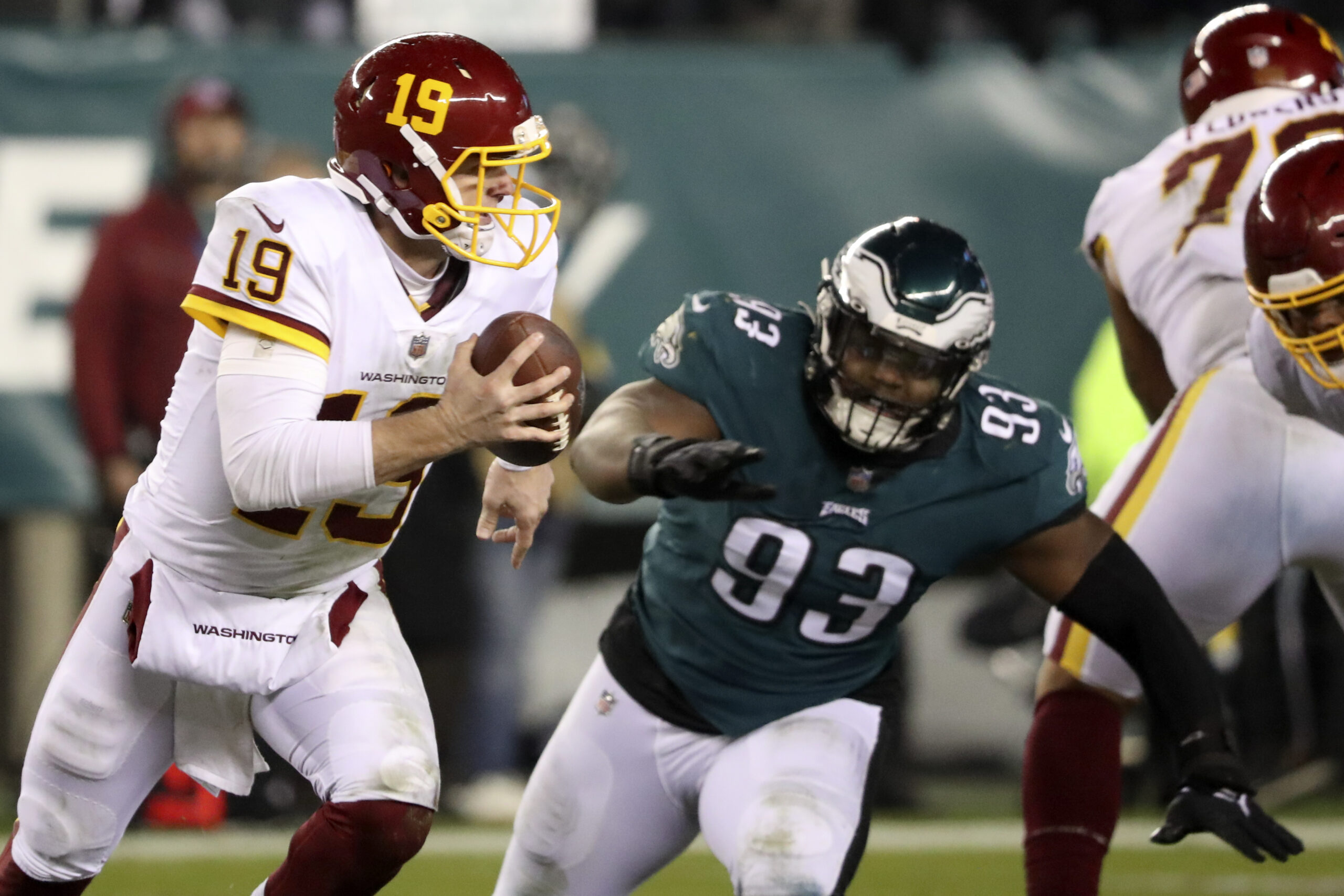 Edge rusher Jaelan Phillips: The deadline acquisition stepped in right away and was a difference-maker along the defensive line. The Eagles need a top-end edge rusher to add to a unit that has Jalyx Hunt and Nolan Smith under contract. Phillips would make sense.