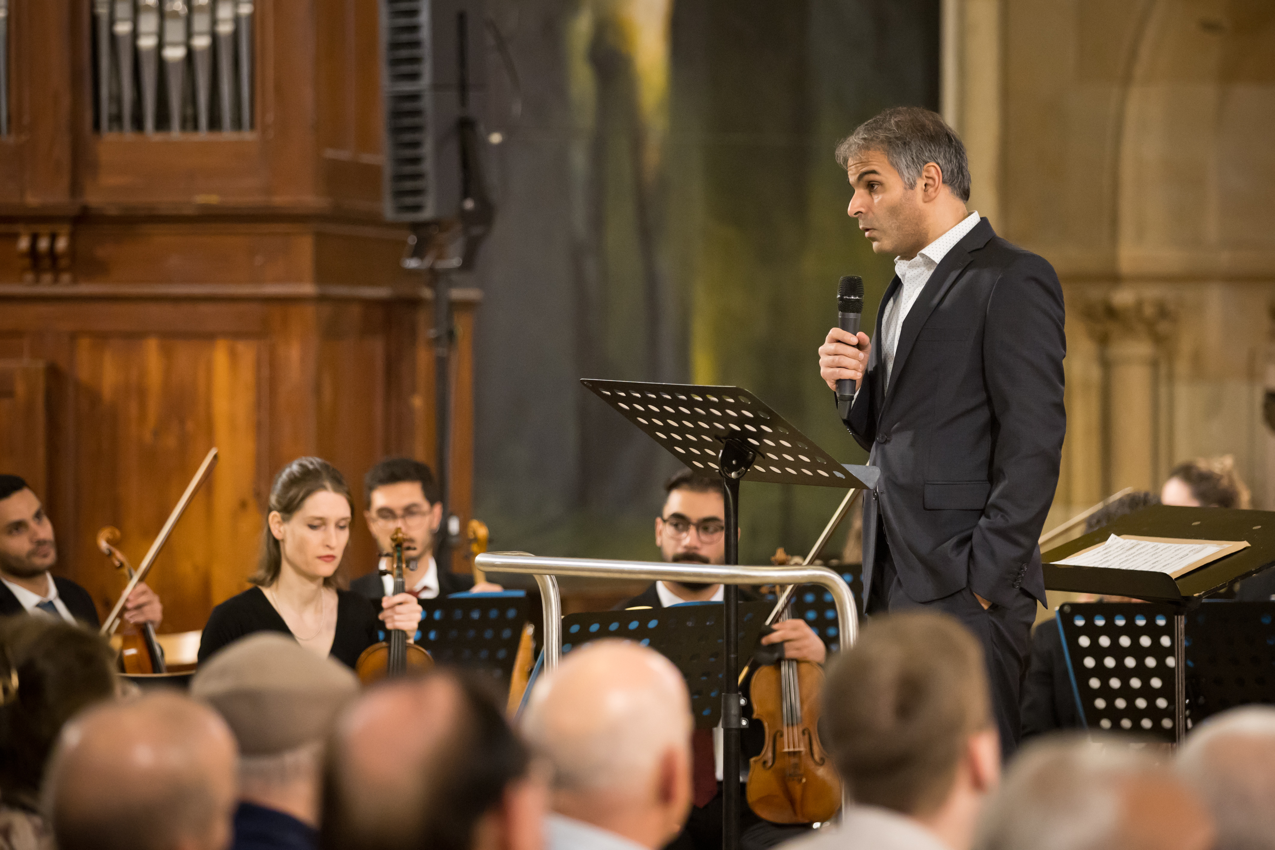 Nabeel Abboud-Ashkar, executive director of Polyphony Education, the conservatory where the Galilee Orchestra is based, speaks during Bachfest 2025 in Leipzig, Germany.