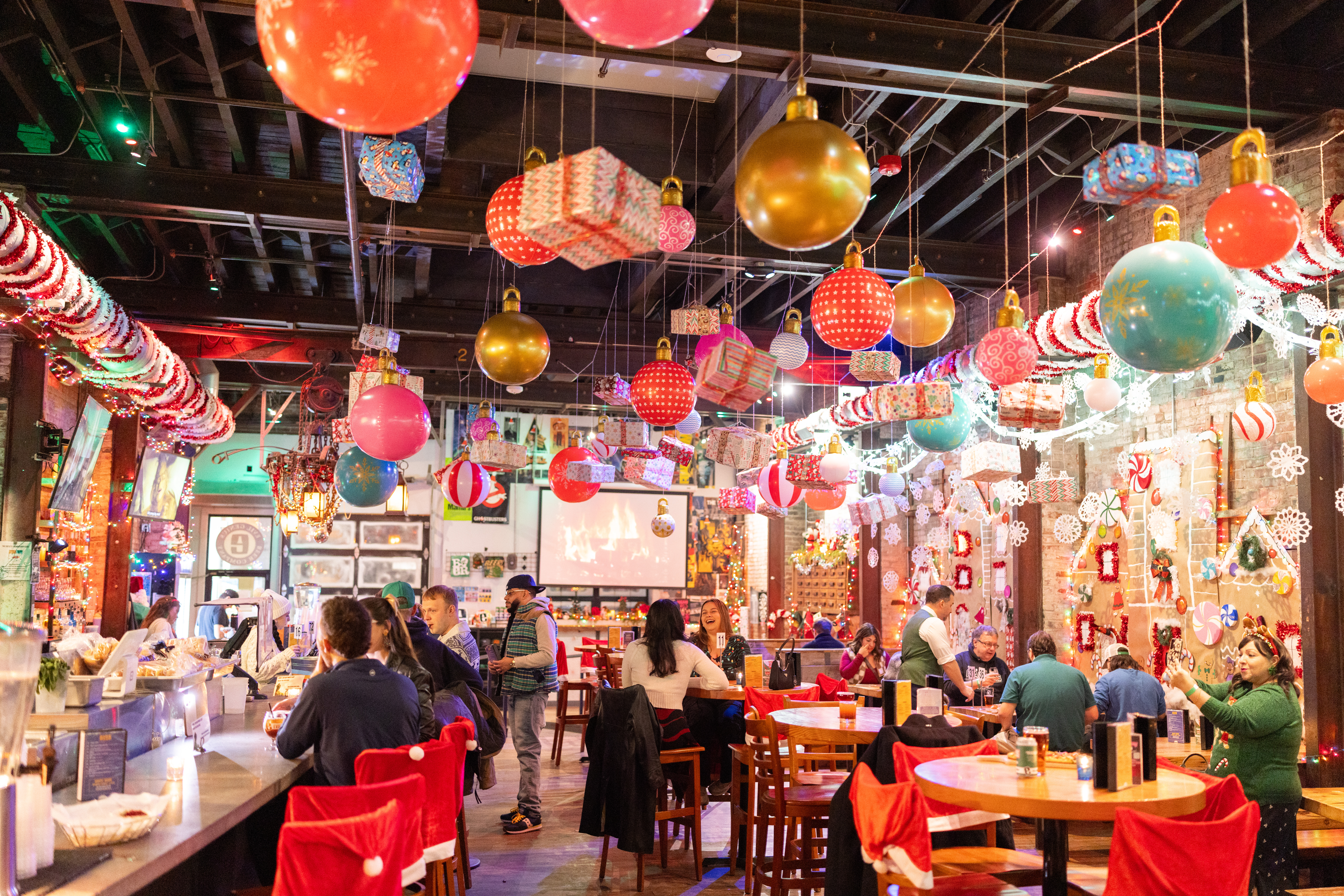 Evil Genius regulars secured their spot on Santa’s nice list by painting larger-than-life gingerbread houses and cutting hundreds of paper snowflakes for the bar’s Twas an Evil Christmas holiday pop-up. Ornaments and wrapped presents hang from the ceiling while guests can sip on the brewery’s signature holiday saison Santa! I Know Him!, a 7.5% ABV Belgian-style brewed with rose hips, dark candy syrup, and chamomile.