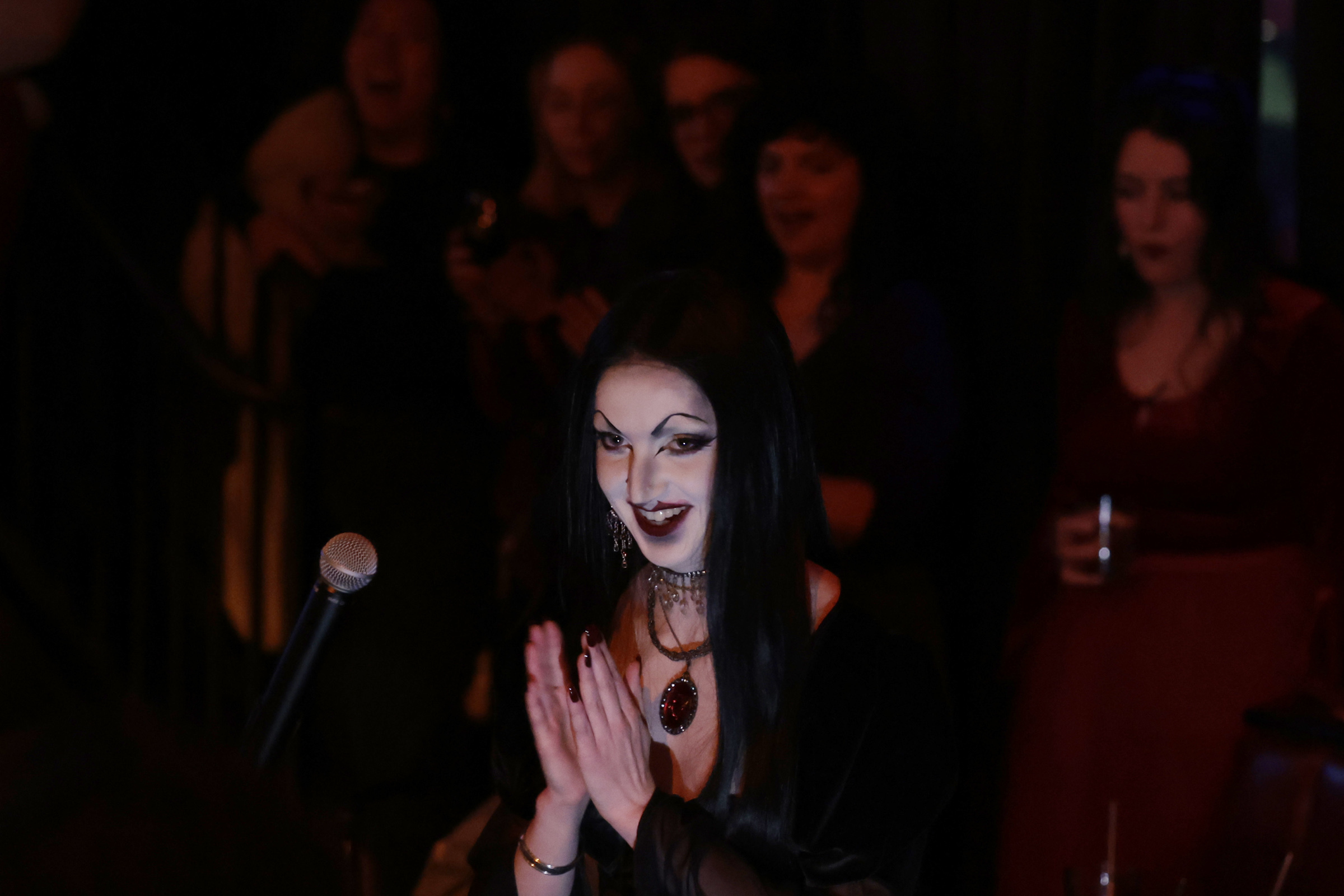 Mira Castigin’s vamprie persona “Elmira” is applauded after performing during the Miss American Vampire Pageant at heavy metal bar Doom. For her talent, Castigin sang opera.