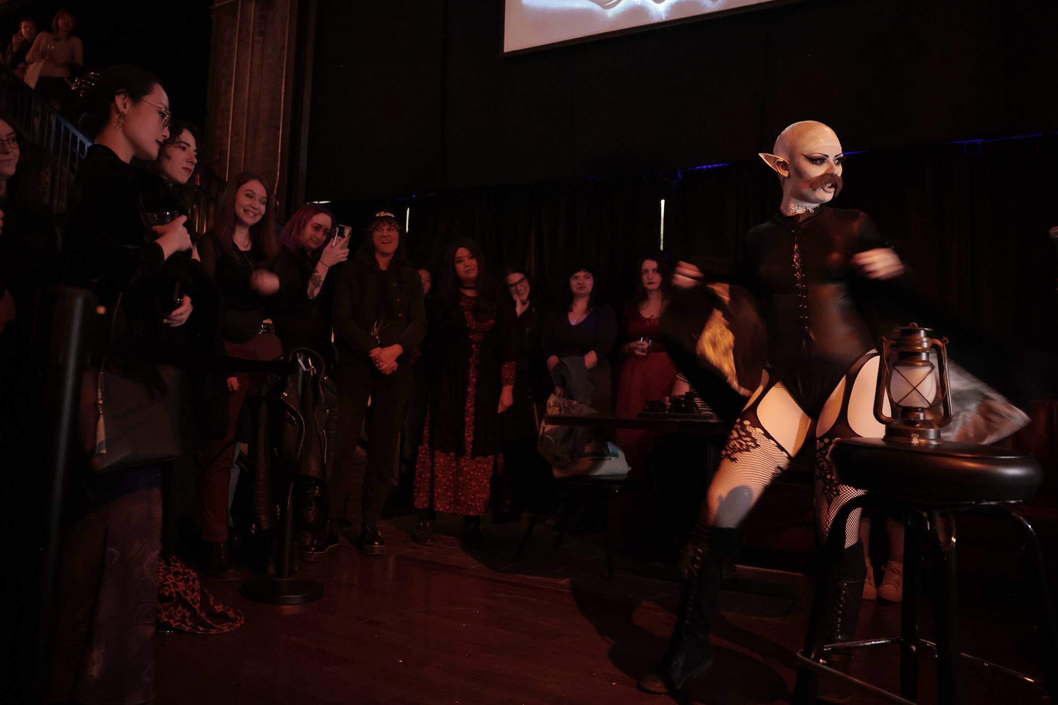 The stakes of Doom’s pageant were far lower than a TV appearance and eternal life, though just as competitive. Contestants were judged by a panel of full-time goths and burlesque performers on their creativity and vampiric presence as they competed in the standard pageant categories: A costume parade, an interview, and a dark art — or talent with a touch of the occult.