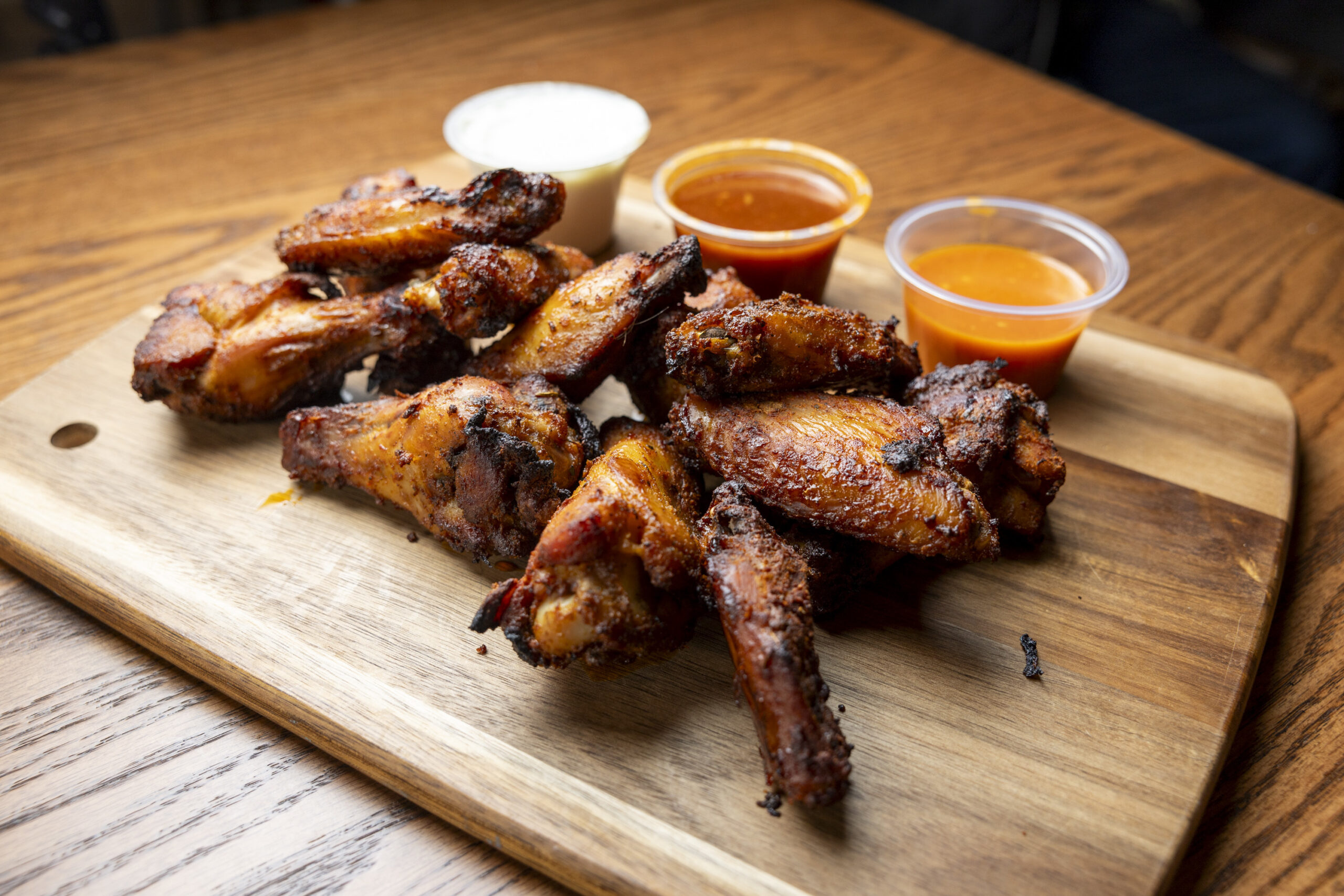 Menu highlights: raw bar (raw oysters, shrimp cocktail, tuna crudo); broiled oysters; winter salad; chicken lollipops; charred branzino; Ibérico pork; grilled mushrooms; Lil’ Kahuna tuna burger special; chocolate-coffee mousse.