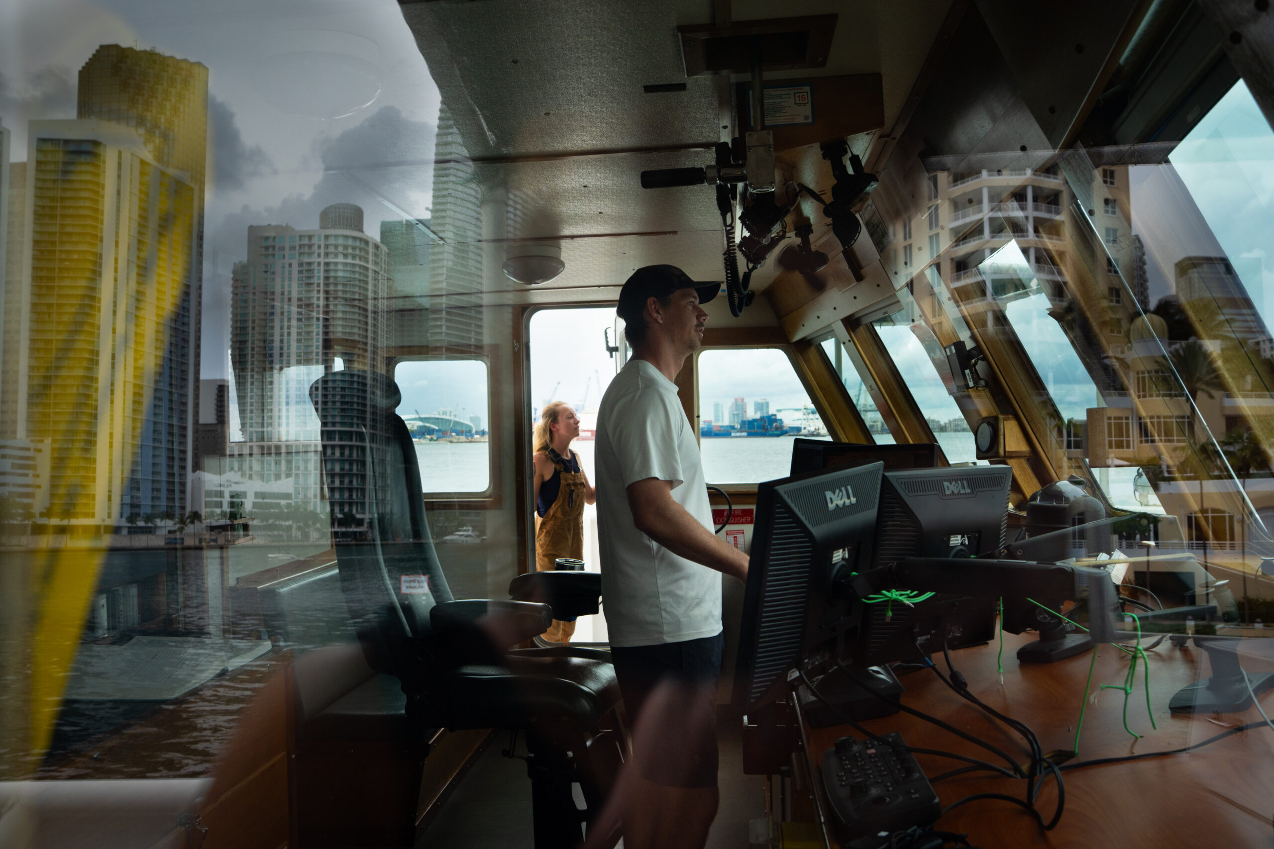 Jay Hooper, who has been on these trips for 10 years and helps with data management, sat at the ship’scomputer station.