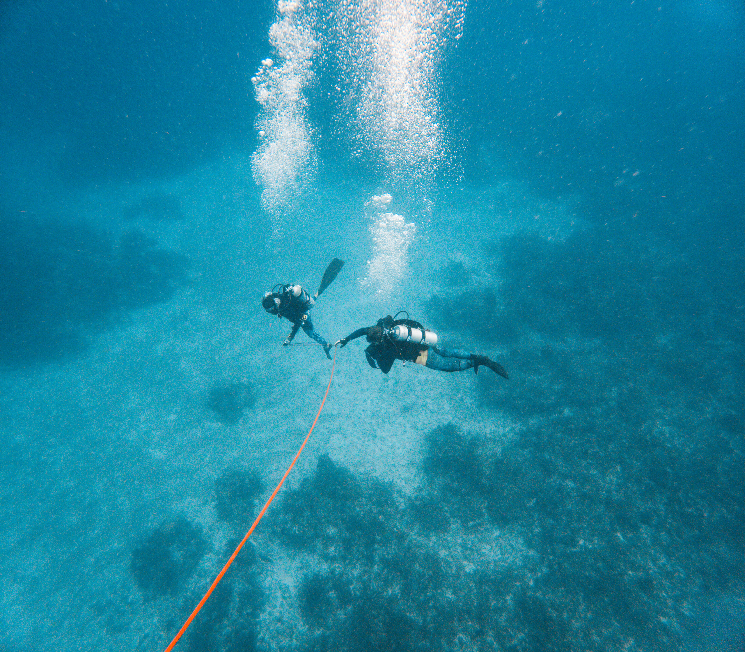 Chomiak, left, and Zach Barton, a technician and engineer, return from diving to the seafloor to place a data-collection instrument.