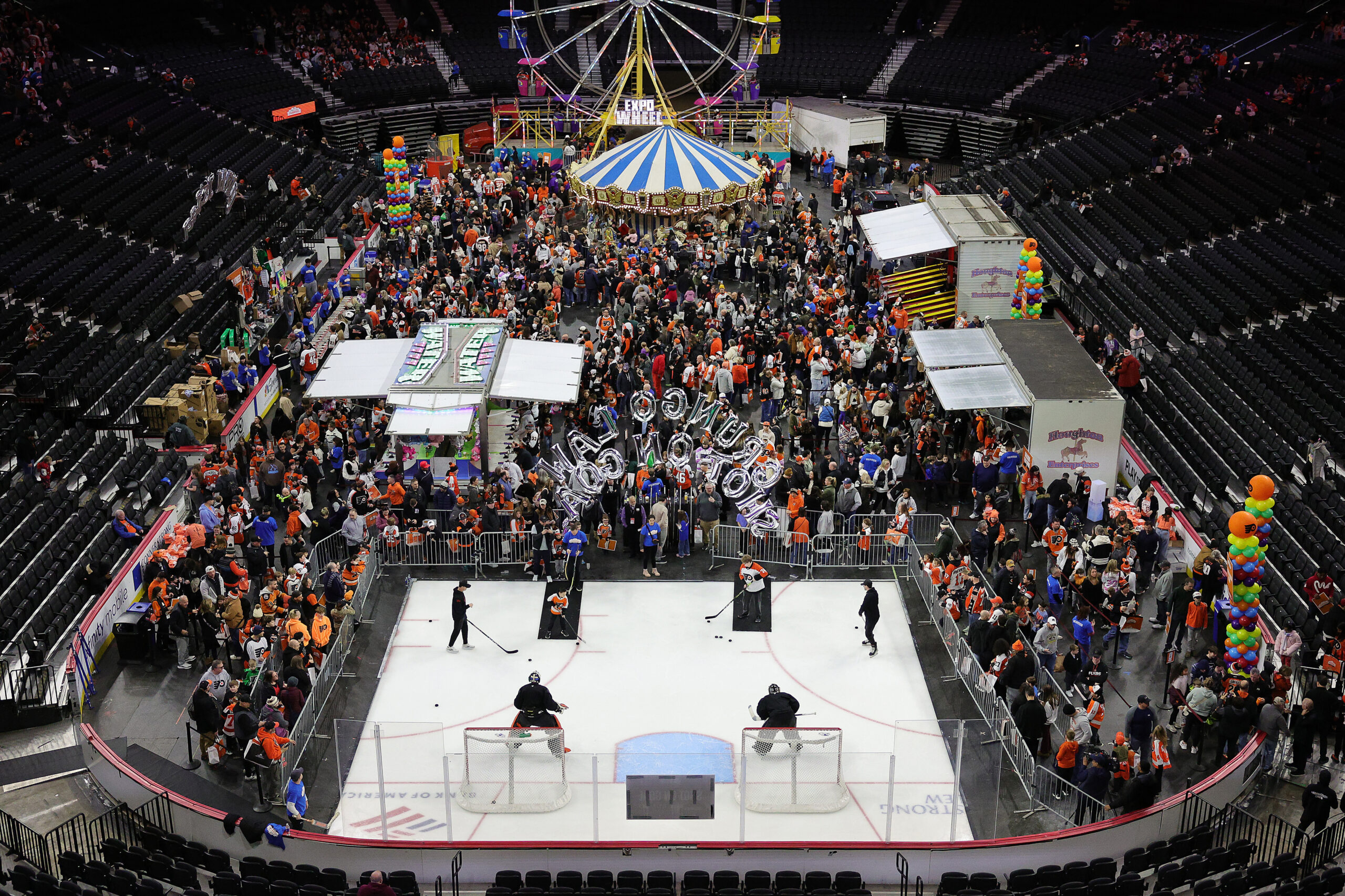 St. Joe’s forward Anthony Finkley (left) reacts after teammate Jaiden Glover-Toscano hits a three during the second half against George Washington. The Hawks’ 76-73 win was their fourth straight.Philly native Ronald Moore (center) was once an NCAA Tournament hero at Siena and now serves as an assistant coach for the Penn Quakers.Neumann Goretti’s Marquis Newson gets up a shot against Father Judge in the first quarter of the Saints’ 71-66 win over the Crusaders in South Philadelphia on Sunday.Neumann Goretti’s Kody Colson passes the ball past Father Judge’s Khory Copeland (4) and Rezon Harris. Unrivaled set a record for attendance at a regular season women’s basketball game during the three-on-three league’s stop in Philly on Friday night.Cameron Brink of the Breeze leaps past Broomall native Natasha Cloud of the Phantoms. Cloud celebrated her professional hoops homecoming on Friday.Friday’s Unrivaled doubleheader drew more than 21,000 fans and was sold out well in advance.Sixers guard Tyrese Maxey (right) said he was surprised to hear that teammate Jared McCain was traded this week. Before the deadline, center Joel Embiid (left) said he had hoped the team would stay intact. Sixers forward Dominick Barlow drives past New Orleans Pelicans center Yves Missi.Flyers forward Owen Tippett beats Capitals goalie Clay Stevenson to give the Flyers a 1-0 lead in the first period of Tuesday’s win over Washington.Flyers goalkeeper Samuel Ersson (left) talks with Samuel Hancock, who plays goalie for his youth league team, at the Flyers Charities Carnival on Sunday.Shawn Paul, 3, receives a little help from his dad, Zach, as they try one of the games at the Flyers Charities Carnival.The Flyers Charities Carnival featured a Ferris wheel, a merry-go-round, and other carnival favorites. Fans could also interact with players, coaches, and alumni.The Phillie Phanatic helps load cases of supplies onto the team truck before it leaves for spring training in Clearwater, Fla. Yes, he packed his hot dog launcher.Sunday’s boys’ basketball game between Neumann Goretti and Father Judge was sold out.