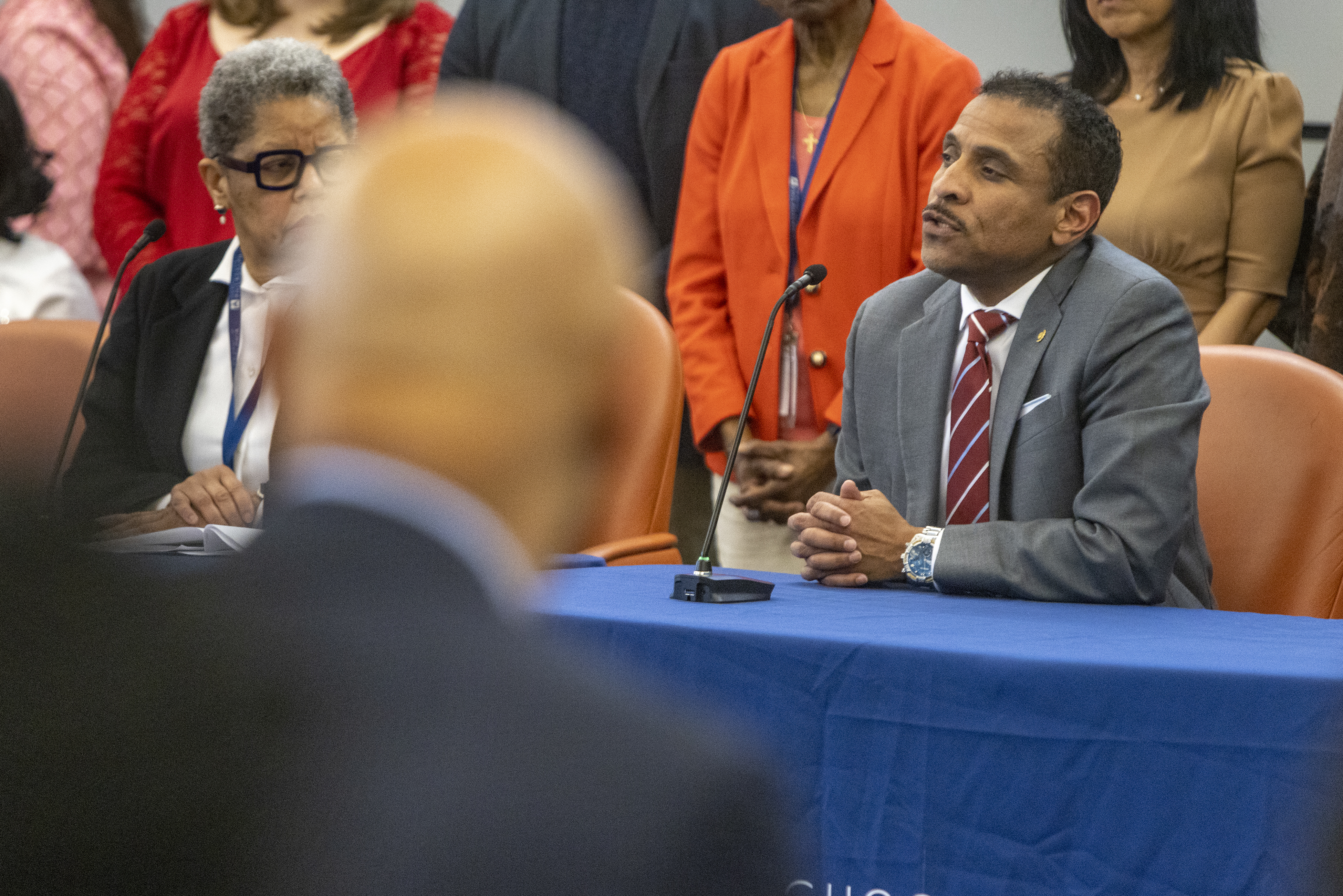 Philadelphia School District Superintendent Tony B. Watlington, Sr. at round table discussion at Murrell Dobbins Career & Technical Education High School Sept. 2, 2025.