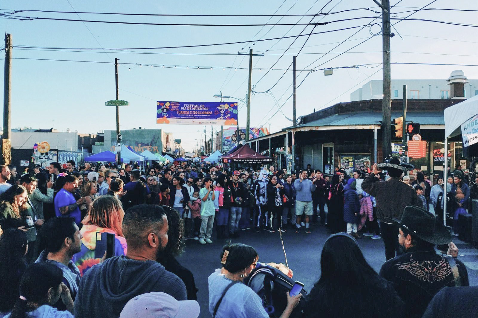 A crowd gathers at last year’s Day of the Dead celebration at the Italian Market in South Philadelphia.
