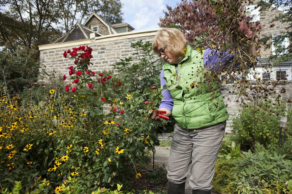 Virginia “Ginny” Smith tends to black-eyed susans in her East Falls garden for the annual fall cleanup.