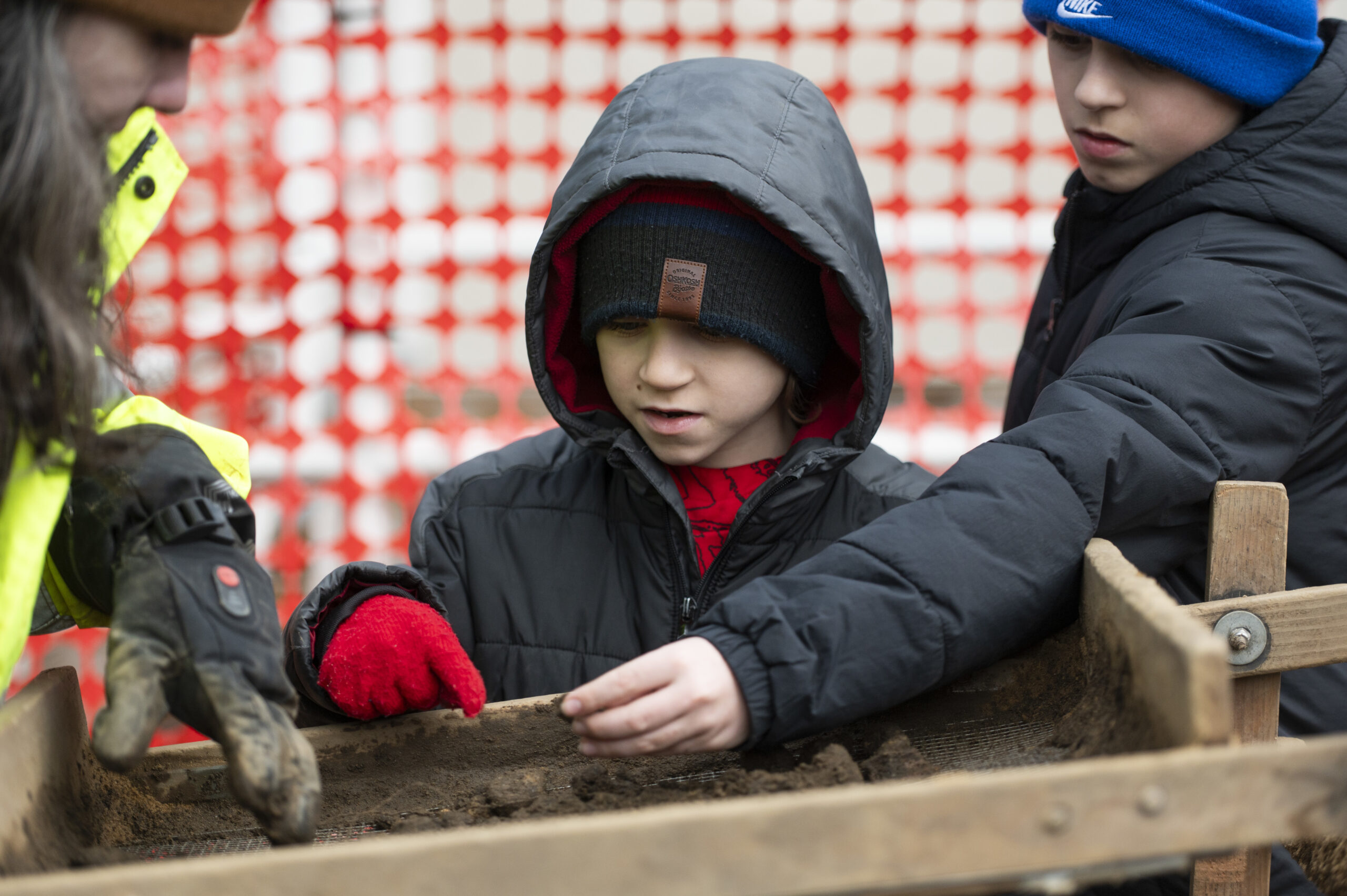 Alanna-Corinne Konkisre (center), 9, of Gloucester County, sifts through dirt to find artifacts at Croft Farm in Cherry Hill, N.J. on Saturday, Feb. 21, 2026. Croft Farm, listed on the National Register of Historic Places, is now an active archaeological site due to the farm’s role during the time of the Underground Railroad.