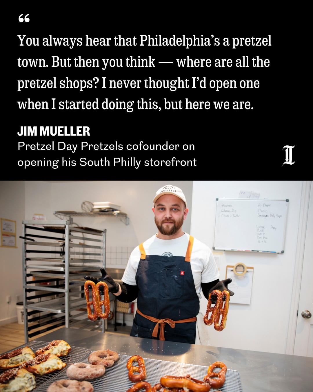 The new bakery opened this weekend at Fifth and Dickinson Streets. Offerings include chewy Bavarians and big-bellied Swabians, which are fat enough to stuff. Just look at the long hot-provolone pretzel.