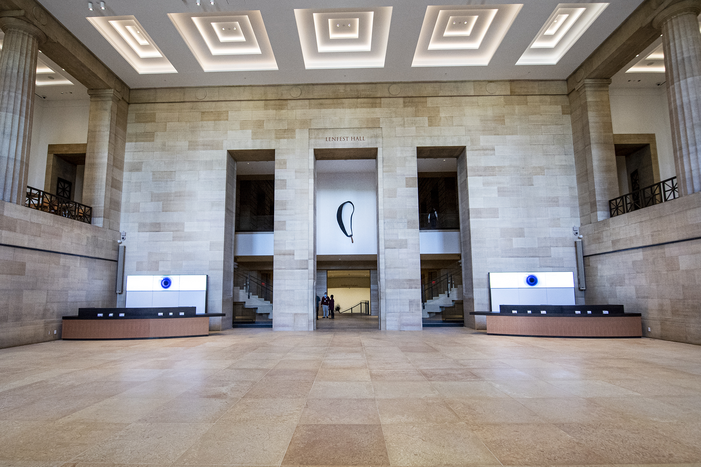 To improve the flow and sight lines into the Philadelphia Museum of Art, architect Frank Gehry took down the wall where Chagall’s theater backdrop hung and streamlined the space.