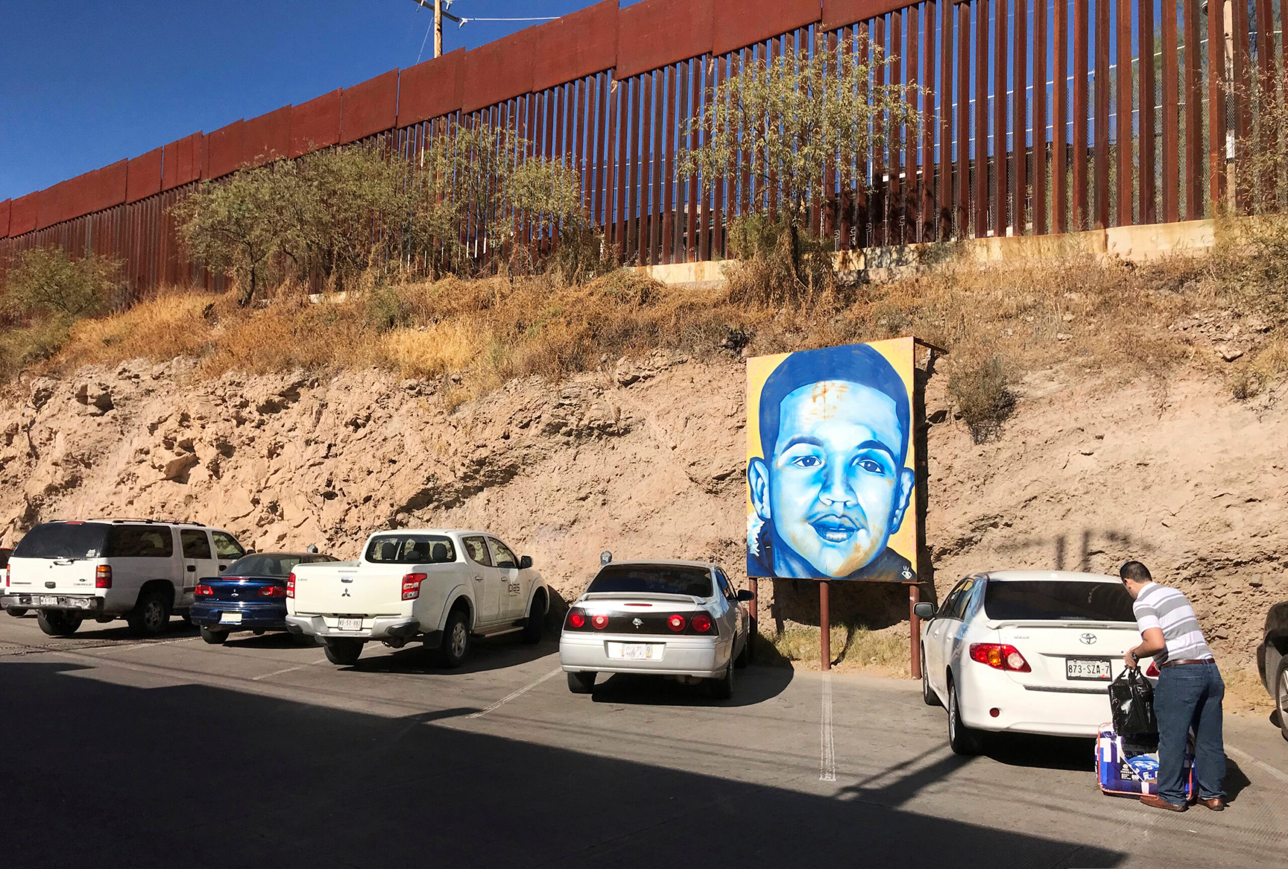This file photo taken in 2017 shows the boundary in Nogales, Mexico, with the United States and a poster of Juan Antonio Elena Rodriguez, a teen who was shot and killed across the line by a Border Patrol agent in 2012.