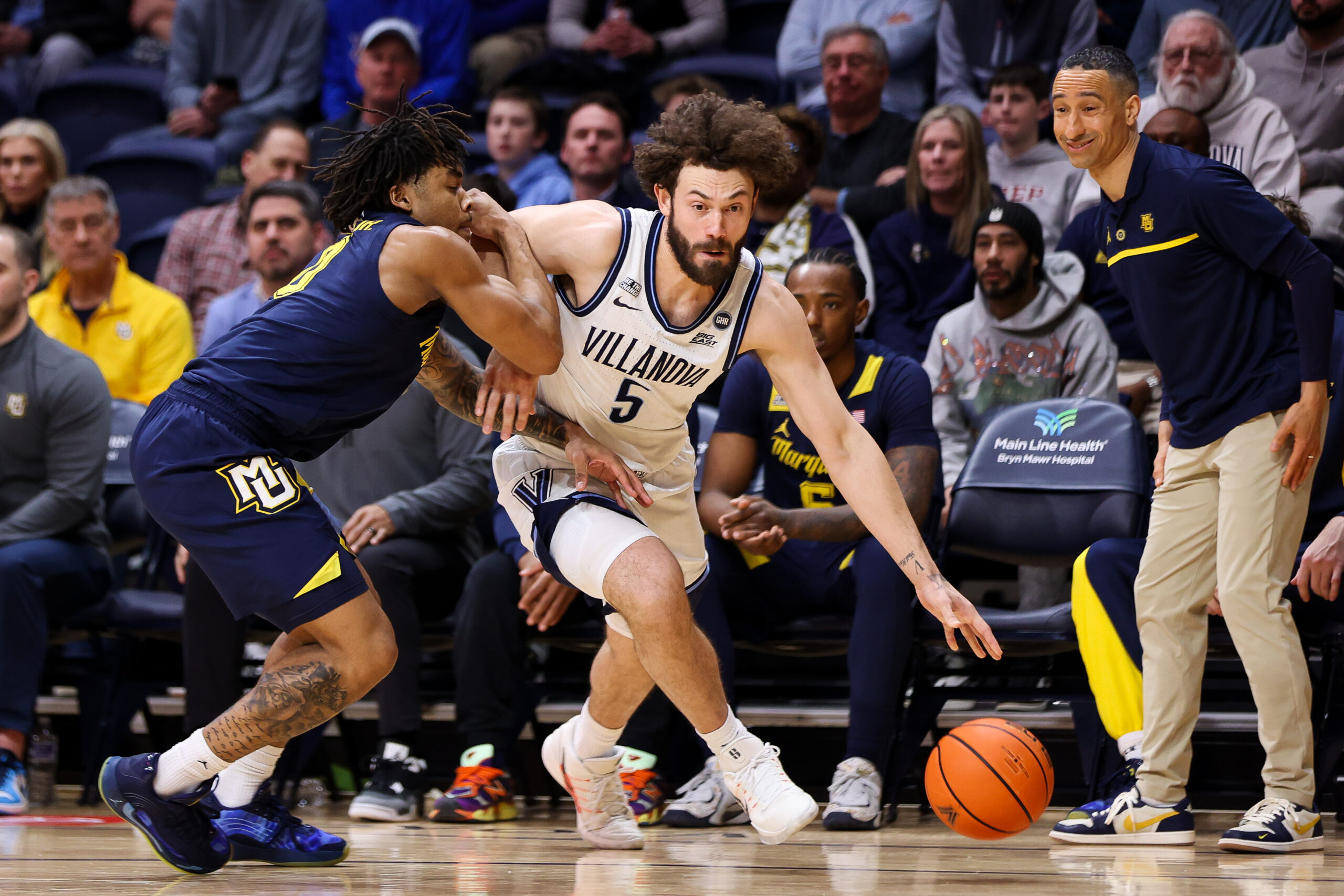 Phillies backup catcher Garrett Stubbs holds on to a pitch during the first day of spring training practice. Most of the team is already in Clearwater ahead of Monday’s first full-squad workout.Reliever Jose Alvarado (left) is no stranger to BayCare Ballpark in Clearwater, Fla., but this is the first spring training with the Phillies for Jhoan Duran, who was acquired ahead of the trade deadline last season.Phillies outfielder Brandon Marsh is back at spring training — as is his popular beard.The Sixers were blown out by the Knicks on Wednesday night, and have lost three of four heading into the All-Star break. Earlier this week, they signed Dalen Terry (right) to a two-way deal.Former Villanova star Mikal Bridges (left) was back in South Philly this week for the Knicks’ win over Justin Edwards (right) and the Sixers.Sixers coach Nick Nurse was without Joel Embiid and Quentin Grimes in Wednesday’s loss to the Knicks.Joe Pagliei, 91, is the Eagles’ oldest living player and was a member of the 1960 championship team.Villanova guard Kennedy Henry (right) is third on the team in scoring (9.2 points per game). The Wildcats (20-5) are currently second in the Big East behind undefeated UConn, the nation’s No. 1 ranked team.Guard Devin Askew (right) has helped the Villanova to a 19-5 record as they look to get back in the NCAA Tournament. The Wildcats have won four straight, including Tuesday’s 77-74 victory over Marquette.Saint Joseph’s guard Jill Jekot (bottom) battles for a loose ball against Dayton forward Ajok Madol in Sunday’s loss. The Hawks bounced back with a 70-63 win over George Washington on Wednesday.Saint Joseph’s guard Gabby Casey (center) has her shot attempt blocked against Dayton. Casey leads the team in points (16.7), rebounds (7.0), and steals (1.7) per game, and is second in assists (3.2).Penn guard Jay Jones (with ball) fights for a rebound during the Quakers’ win over Princeton University on Saturday at the Palestra. Penn hosts Columbia on Friday night.Penn guard AJ Levine (left) celebrates with teammates after the Quakers’ win over Princeton. It was the team’s second straight after three losses in a row.Villanova center Duke Brennan (left) collides with Marquette Golden Eagles forward Royce Parham (13). The Wildcats will go for their fifth straight win Saturday against Creighton.While the Phillies are in Clearwater, the La Salle University baseball team practices on campus in the cold. The team takes on the University of Maryland Eastern Shore on Friday in their first game of the season.