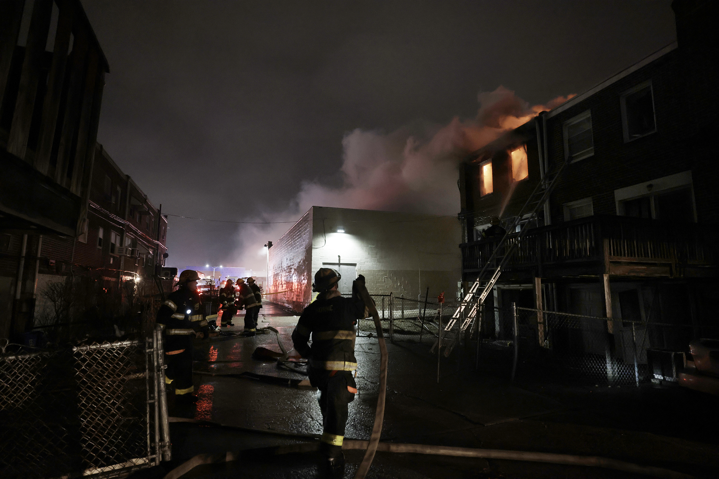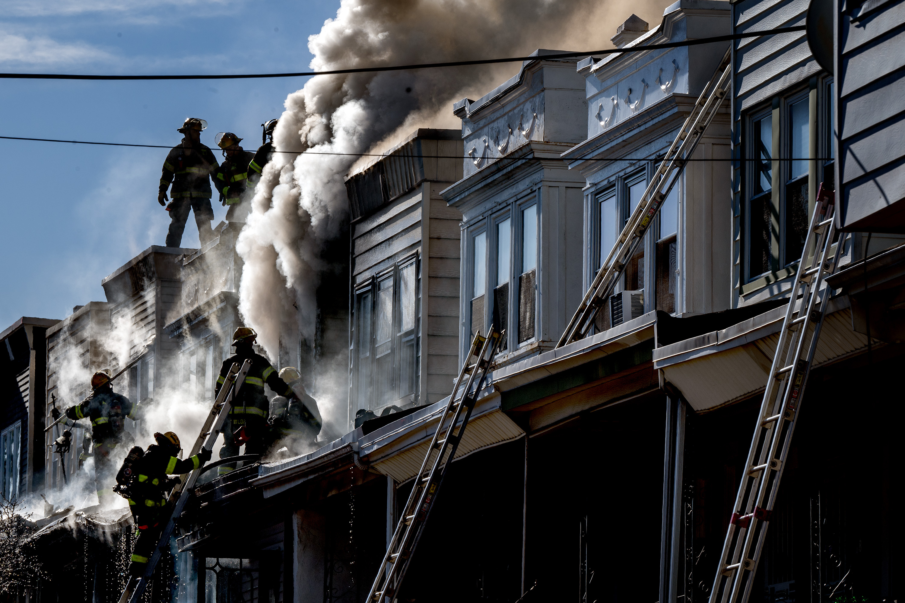 I got there as firefighters were just starting to climb up to the rowhouse roofs on North Lambert Street.