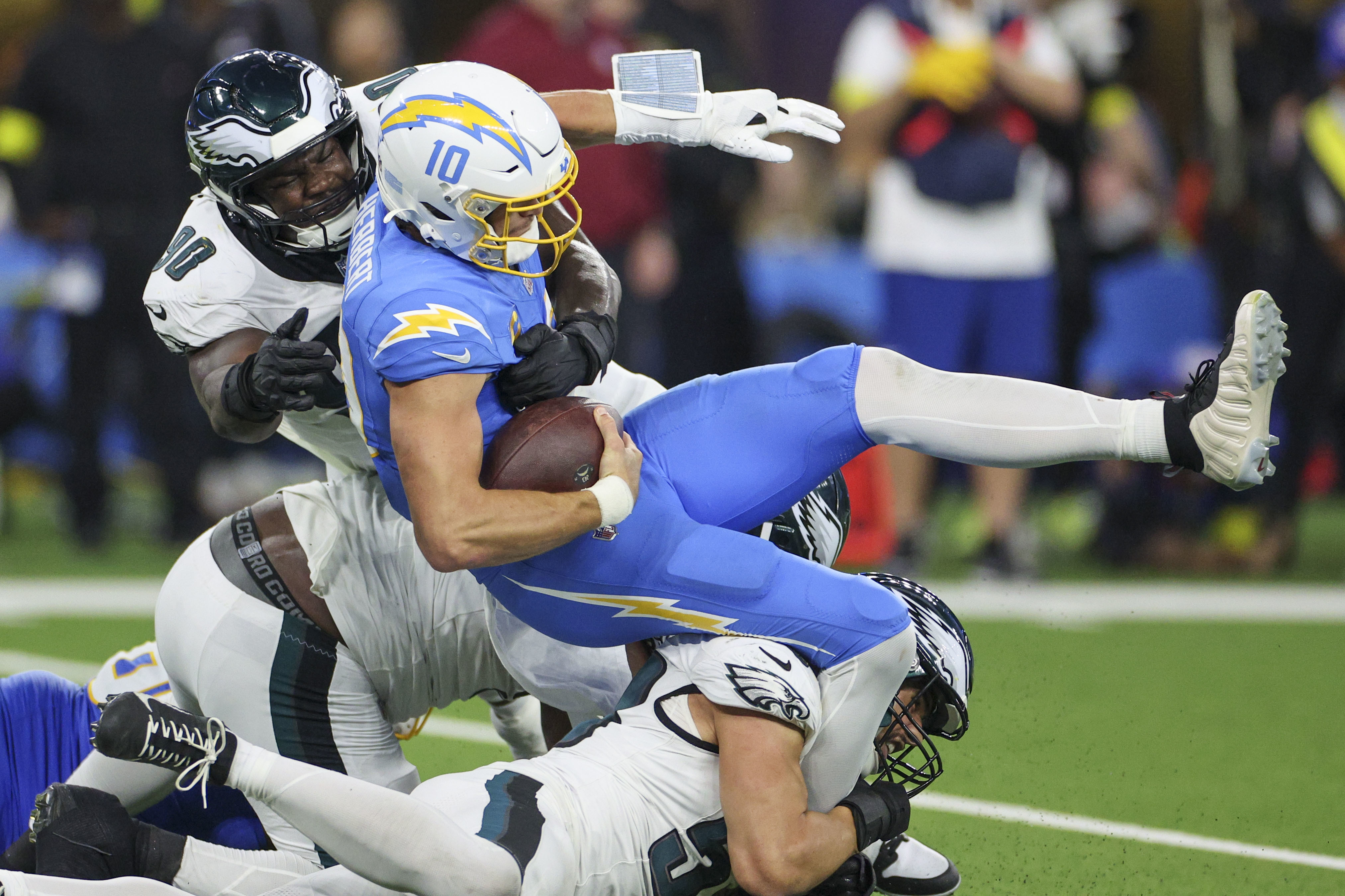 And in Inglewood, Calif., the Eagles dropped their third straight game in a 22-19 overtime loss to the Los Angeles Chargers.