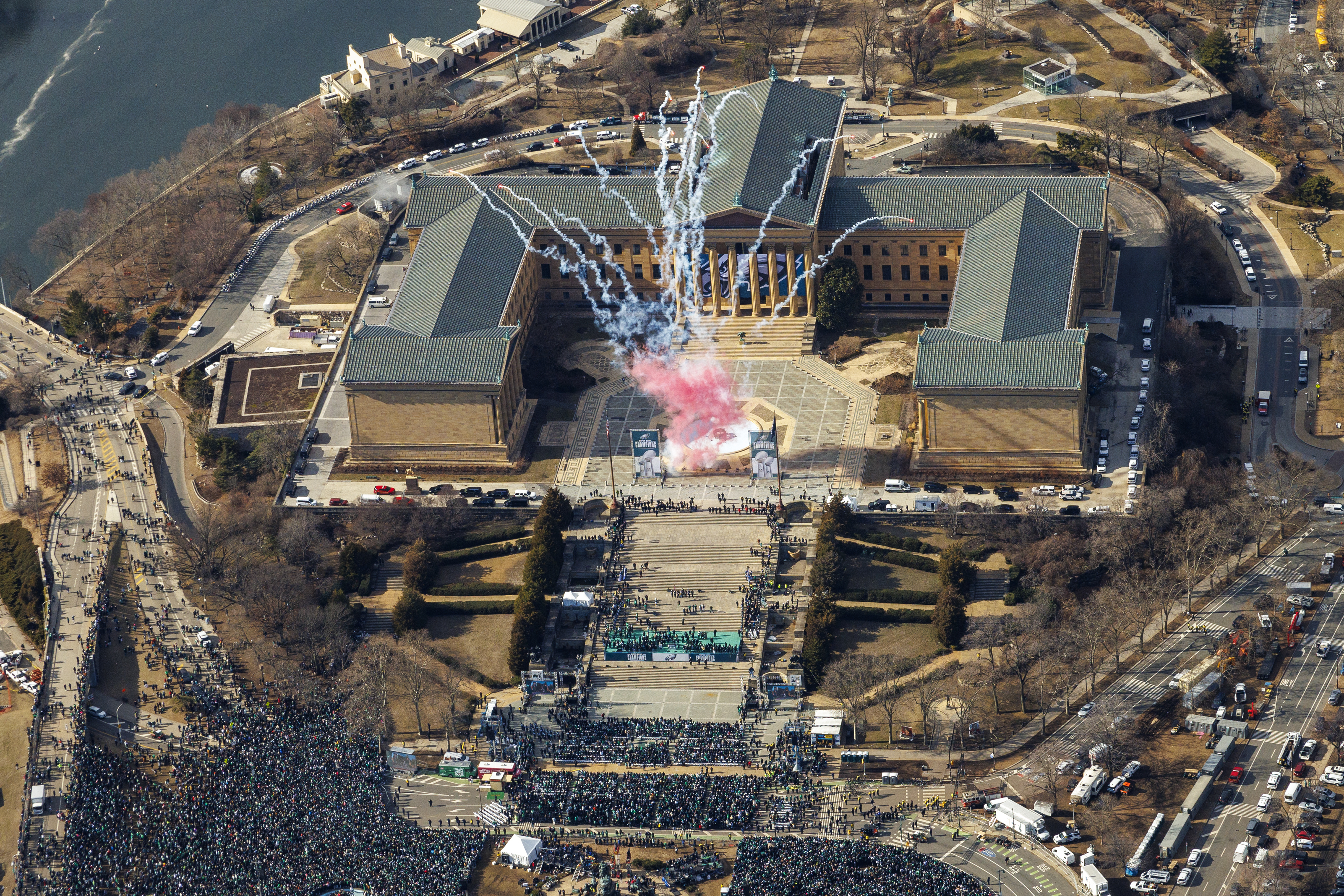 Ahead of Sunday’s wildcard playoff game against the San Francisco 49ers, the museum put up giant cutouts of four Eagles players on its iconic front steps. The cutouts first appeared in 2014 (before the Birds’ wild-card loss to the New Orleans Saints) and again a few times over the years, including before both Super Bowl wins in 2018 and last year.
