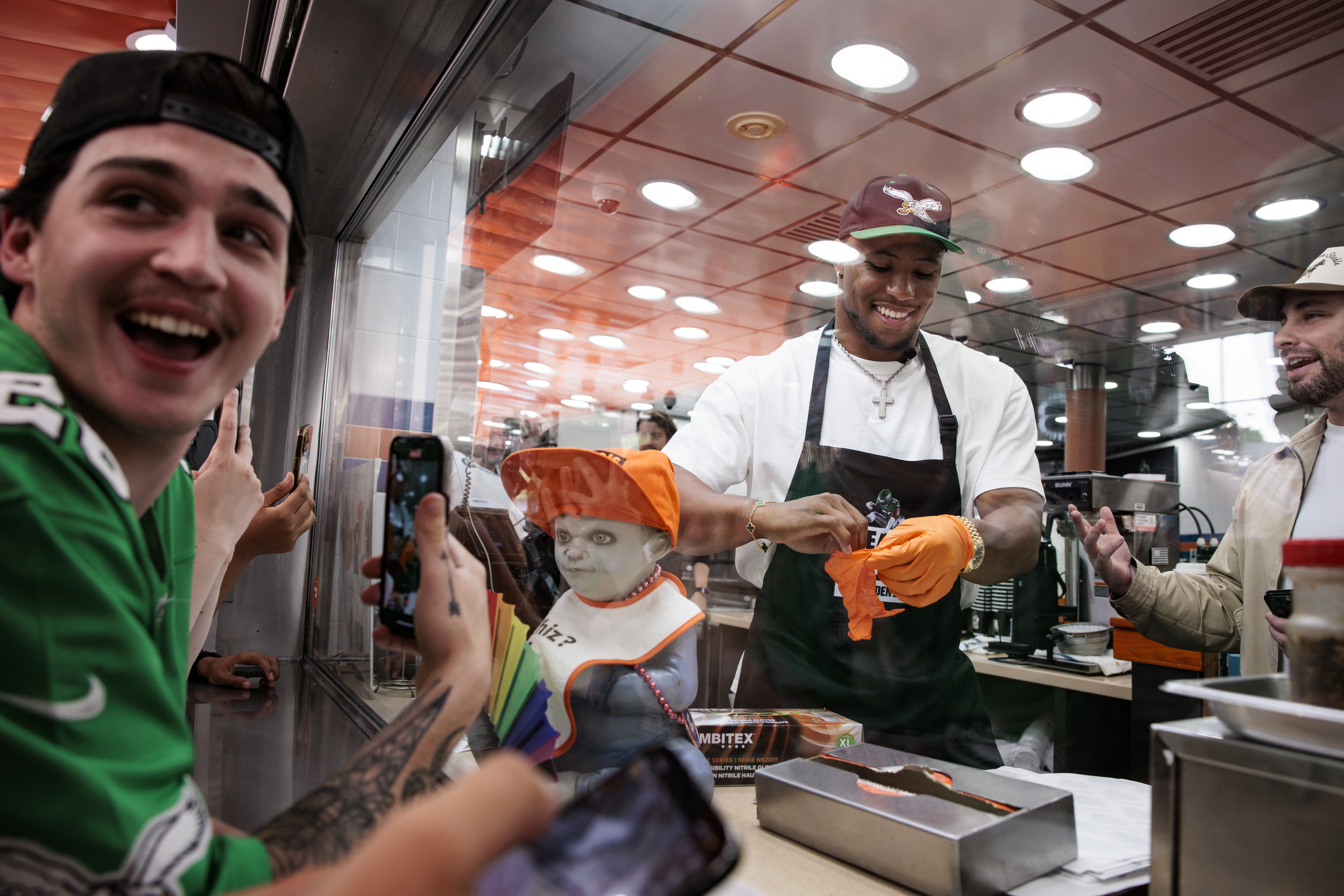 City workers and volunteers move dumped tires toward garbage trucks during the Philly Spring Cleanup at Tacony Creek Park in April.Visitors tour Lucy the Elephant in April. The historic six-story structure has been a Margate, N.J., landmark for more than a century. Celal Emanet (center), with son Muhammed (right) and family friend Mustafa Tug, waits for his wife, Emine, to be released from the U.S. Immigration and Customs Enforcement center in Elizabeth, N.J., on March 12. The Emanets were arrested at their Jersey Kebab restaurant in Haddon Township two weeks earlier.Fulya Labernas (left) takes a picture of her 1-year-old son, Ibrahim, and her cousin, Neslihan Kalkan, outside Jersey Kebab on March 30. Celal and Emine Emanet prepared a feast to thank community members who rallied and raised money on their behalf after they were arrested by ICE agents.Andrew Ahl of the Reptile and Amphibian Department at the Philadelphia Zoo holds a Western Santa Cruz Galapagos tortoise that hatched in April.Montgomery County seniors in their 70s, 80s, and 90s cross Egypt Road from their continuing care retirement community in Audubon to protest the Trump administration on May 1. Members of the Camden High Marching Band attend a college signing day celebration at Rutgers Camden on May 2. Front row from left: Jazmynne Houston and Shaleah Navarro. Second row from left: Marjhani Land, Shalynn Mitchell, and Jaida Mitchell.Spectators watch the action during the Truist Championship at the Philadelphia Cricket Club’s Wissahickon Course on May 8. A roller blader passes the “Weaver’s Knot: Sheet Bend” artwork along the Delaware River Waterfront on May 12. Spectators people-watch outside Rim Cafe during the annual South 9th Street Italian Market Festival on May 18 in Philadelphia. From left: Joe Mirarchi, Howie Brown, William Gambino, and a person who didn’t want to give his name.On June 2, Saquon Barkley stopped by to help out at Geno’s Steaks, which was dubbed “Steakquon’s,” in celebration of the Eagles running back’s “Madden NFL 26” video game cover announcement.The aftermath of a large fire that engulfed multiple SEPTA buses at the Roberts Yard SEPTA Railroad Facility in Nicetown on June 5. Officials said 40 buses in the lot were damaged.Independence National Historical Park staff members fired muskets on June 6 during Revolutionary War weapons training. The training on reproduction flintlock muskets took place on the lawn south of Carpenter’s Hall in Philadelphia.Women dressed in colonial garb march in the “No Kings” political demonstration protesting the Trump administration on June 14 in Philadelphia.Wydad fans celebrate a goal as their team plays Juventus in the 2025 FIFA Club World Cup Group G match at Lincoln Financial Field in Philadelphia on June 22. Juventus won 4-1.Justin and Erica Vidal, of Galloway, N.J., enjoy ice cream cones in their 1967 Dodge Dart convertible with sons Alessio, 2 months; Nino, 2; and Alexander, 5, at Kustard Korner in Egg Harbor City.The Jewell and Alisio families celebrate the Fourth of July weekend with a block party on Roseberry Street in Philadelphia on July 5.Angel Luis Rosado with Athena Contracting Inc. works to clear garbage at a dump site at Caldera and Red Lion Roads on July 8 during the second week of AFSCME District Council 33’s strike.Mayor Cherelle L. Parker walks from her City Hall office on July 9 to speak hours after her administration struck a tentative contract agreement with AFSCME District Council 33 leaders, ending a strike. With her are Chief Deputy Mayor Sinceré Harris (from left), Chief of Staff Tiffany W. Thurman, and Chief Deputy Mayor Vanessa Garrett Harley.A wild turkey found itself stuck in traffic with many others after a crash on the northbound side of the North-South Freeway (I-76) in Gloucester City, N.J., on July 11.Phillies starter Ranger Suárez unraveled in the second inning of a game on July 20 against the Los Angeles Angels. The blur was created in-camera using a slow shutter speed and panning with the movement.Eagles players Nakobe Dean (from left), Jalen Hurts, Moro Ojomo, and Jordan Davis relax on the field after training camp practice on July 26.Willa Allen, the widow of Dick Allen, waves to the crowd as she rides in the Hall of Fame Legends Parade with her family on July 26 in Cooperstown, N.Y. Dick Allen, Dave Parker, CC Sabathia, Ichiro Suzuki, and Billy Wagner were among those inducted into the National Baseball Hall of Fame.Union forward Mikael Uhre (second from left) celebrates his second half go-ahead goal with his teammates against the Colorado Rapids at Subaru Park in Chester, Pa., on July 26.James Burton, 59, of West Oak Lane (from left), Raymond Johnson, 62, of West Oak Lane, and Mike Johnson, 58, of Newport, Del., sit at the bay door watching a downpour at Ray’s Auto in Germantown on July 31.Closer Jhoan Duran makes his Phillies debut against the Detroit Tigers on Aug. 1 at Citizens Bank Park. The Phillies win 5-4.Ari from Philly (back to camera) gets decorated by “the glitter guy” on Aug. 23 before the start of the 2025 Philly Naked Bike Ride at Lemon Hill.Philadelphia schools Superintendent Tony B. Watlington Sr. (left) and Mayor Cherelle L. Parker greet a student at Edward T. Steel School on Aug. 25, the first day of school.A rider carries his plants on the 66 bus at the SEPTA Frankford Transportation Center on Aug. 25. Frustration and confusion were being seen at Center City transit hubs amid SEPTA cuts.Steve Jamison, owner of Blue Sole Shoes at 1805 Chestnut St., on Aug. 26. After a vandal damaged the store’s window with a brick, Jamison cut a boot in half and glued each half on opposite sides of the window to create a “lighter situation” while he waited for new glass to be installed.Audenried players Myhaj Oliphant (26) and Jaylin Simms rest while head coach Roy-Al Edwards (far right) talks with another coach during halftime at Chichester High, in Boothwyn on Aug. 28. Chiche