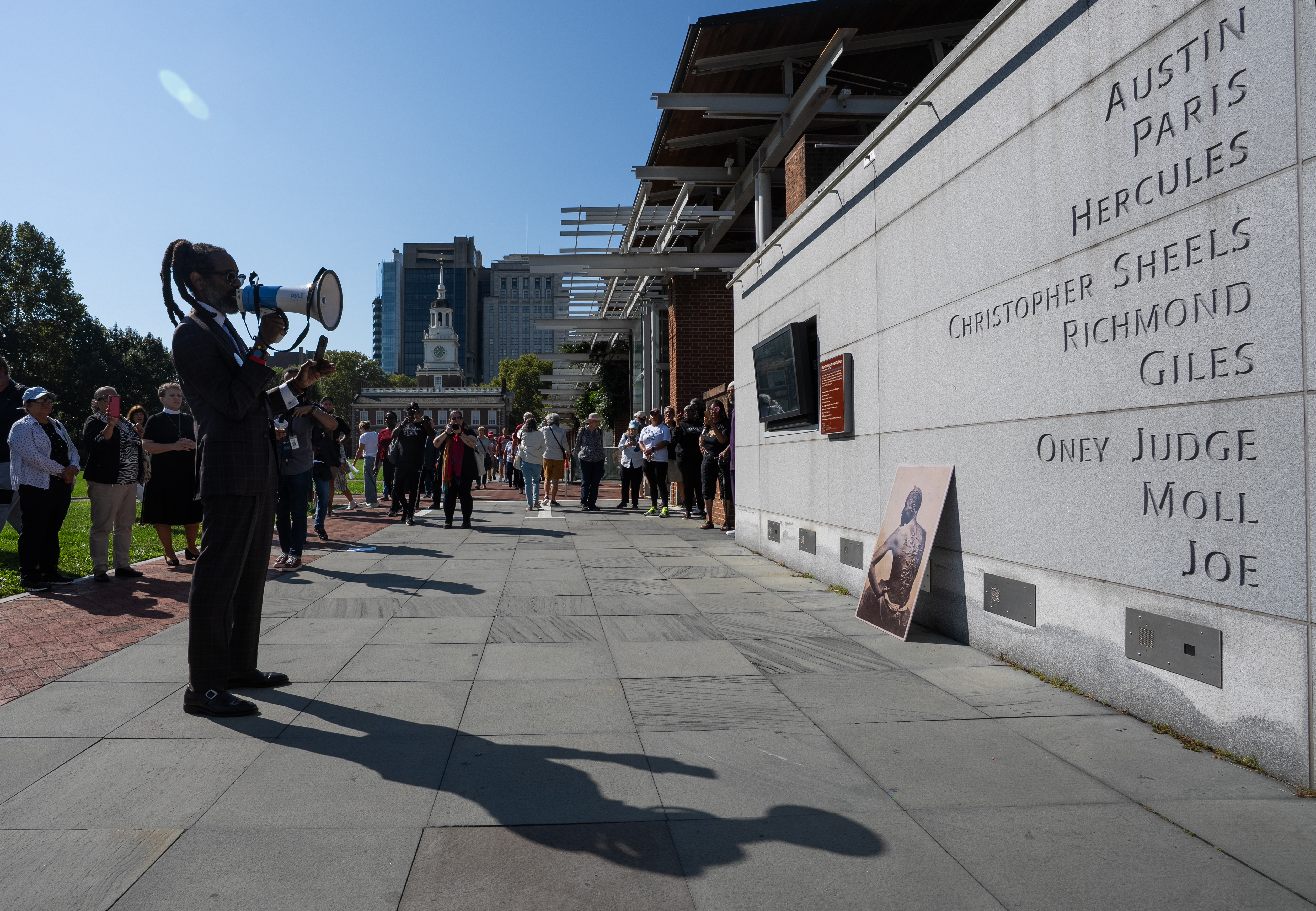 The reconstructed “ghost” structure with partial walls and windows of the building known in the eighteenth-century as 190 High Street is officially titled, “Freedom and Slavery in the Making of a New Nation” (2010).