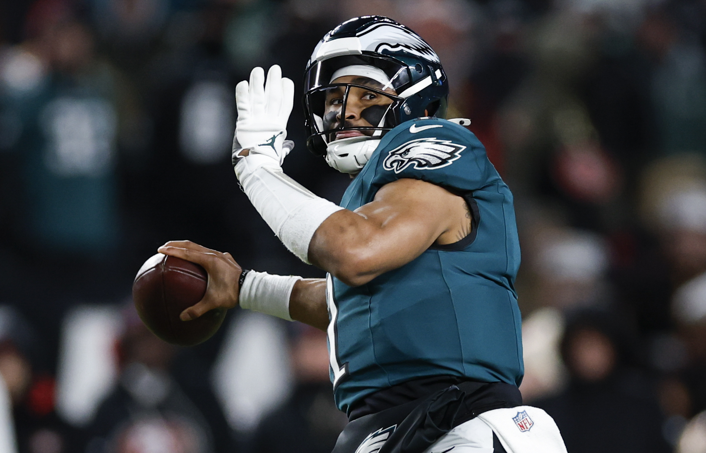 The same can be said of Hurts, who is surrounded by a similarly pedigreed cast: four Pro Bowl offensive linemen, two 1,000-yard receivers, and a running back halfway to the Hall of Fame.