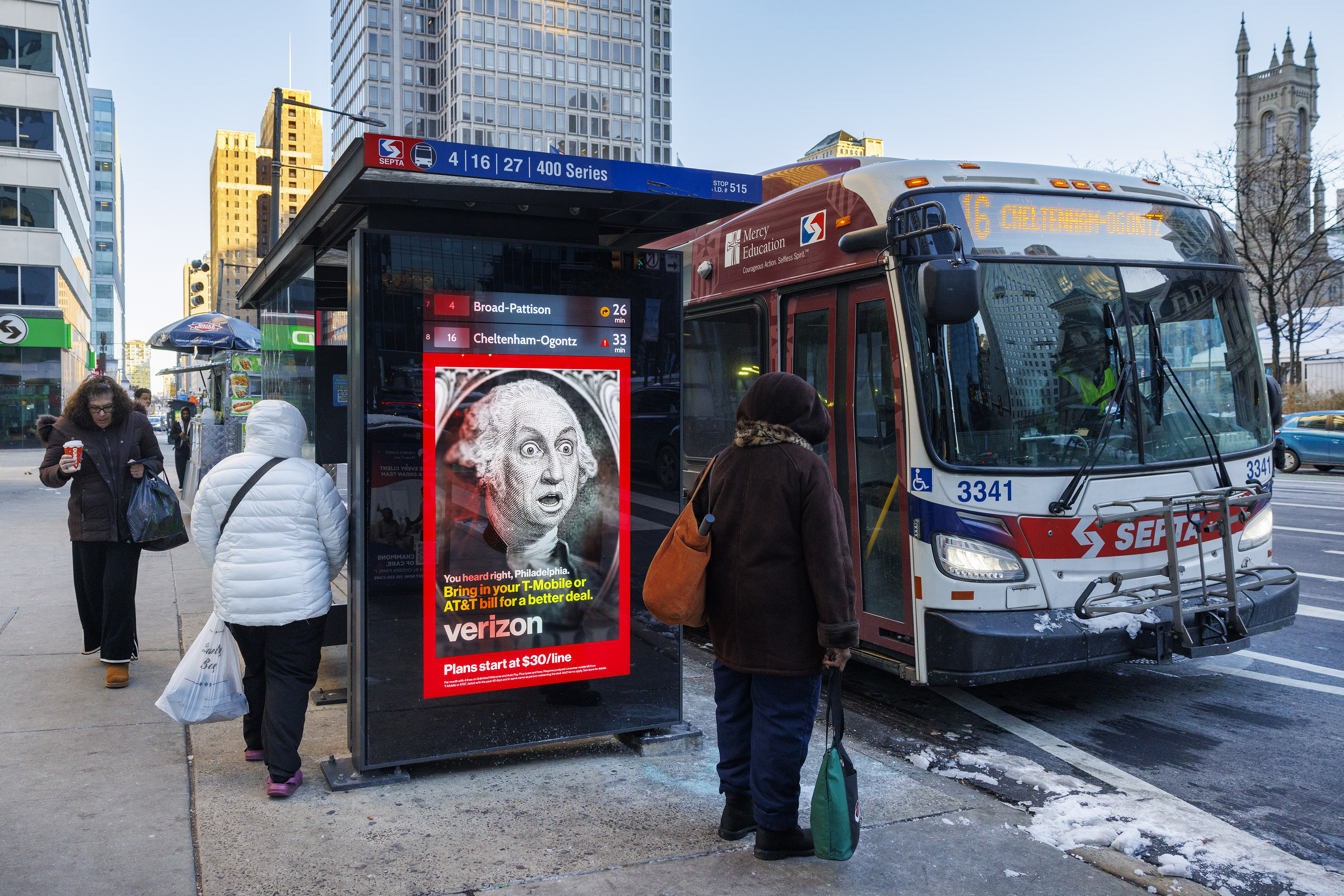 Winter coats are out on a cold morning at a bus stop at 15th and Market Streets on Dec. 15.