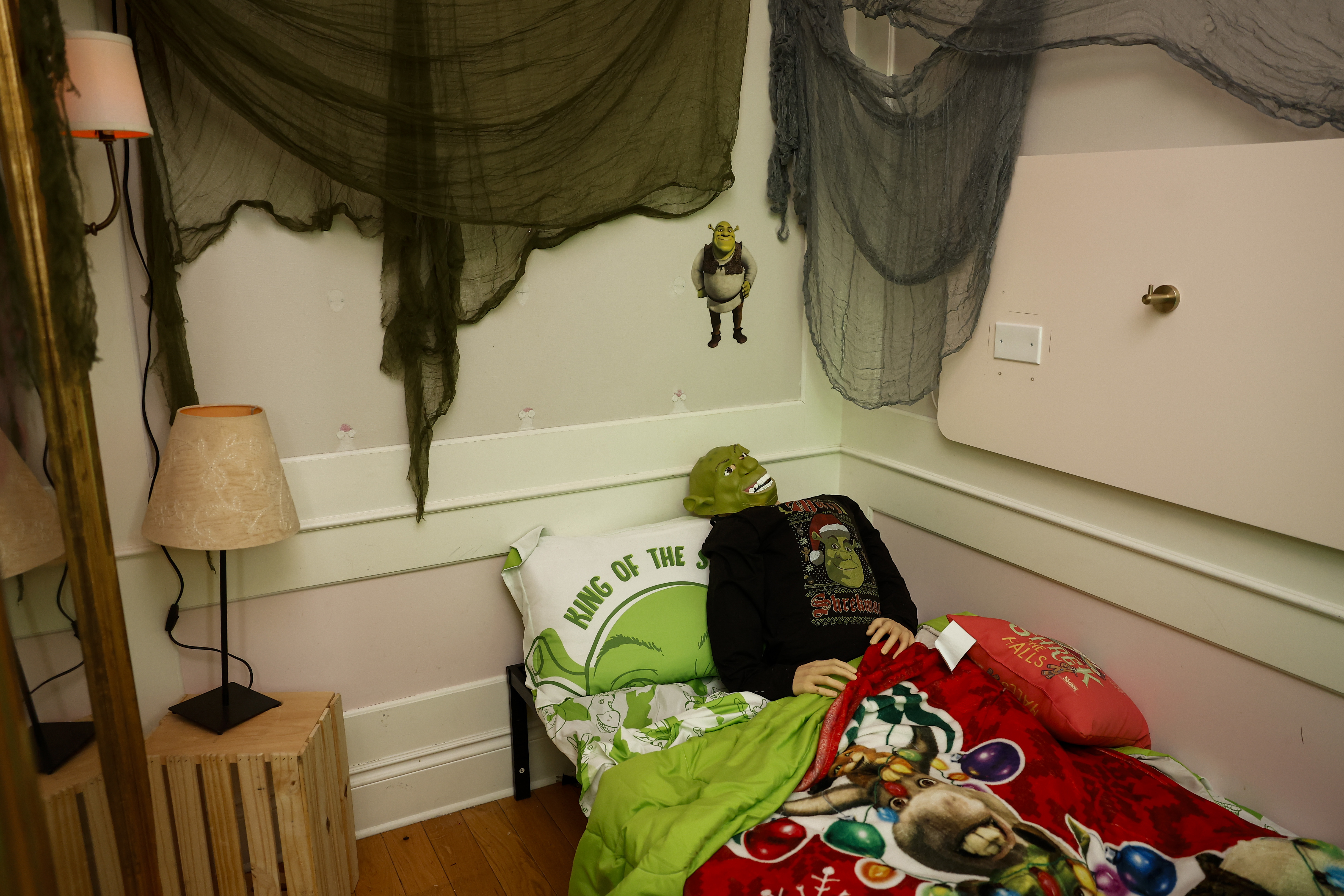 There are tamer rooms like the “Hootel Room” — filled with artificial trees and owls — to a New Year’s Eve strobe-light room. A few backrooms go the extra mile, with one featuring Shrek taking a nap in a small bed, bundled up in Christmas and Shrek blankets.