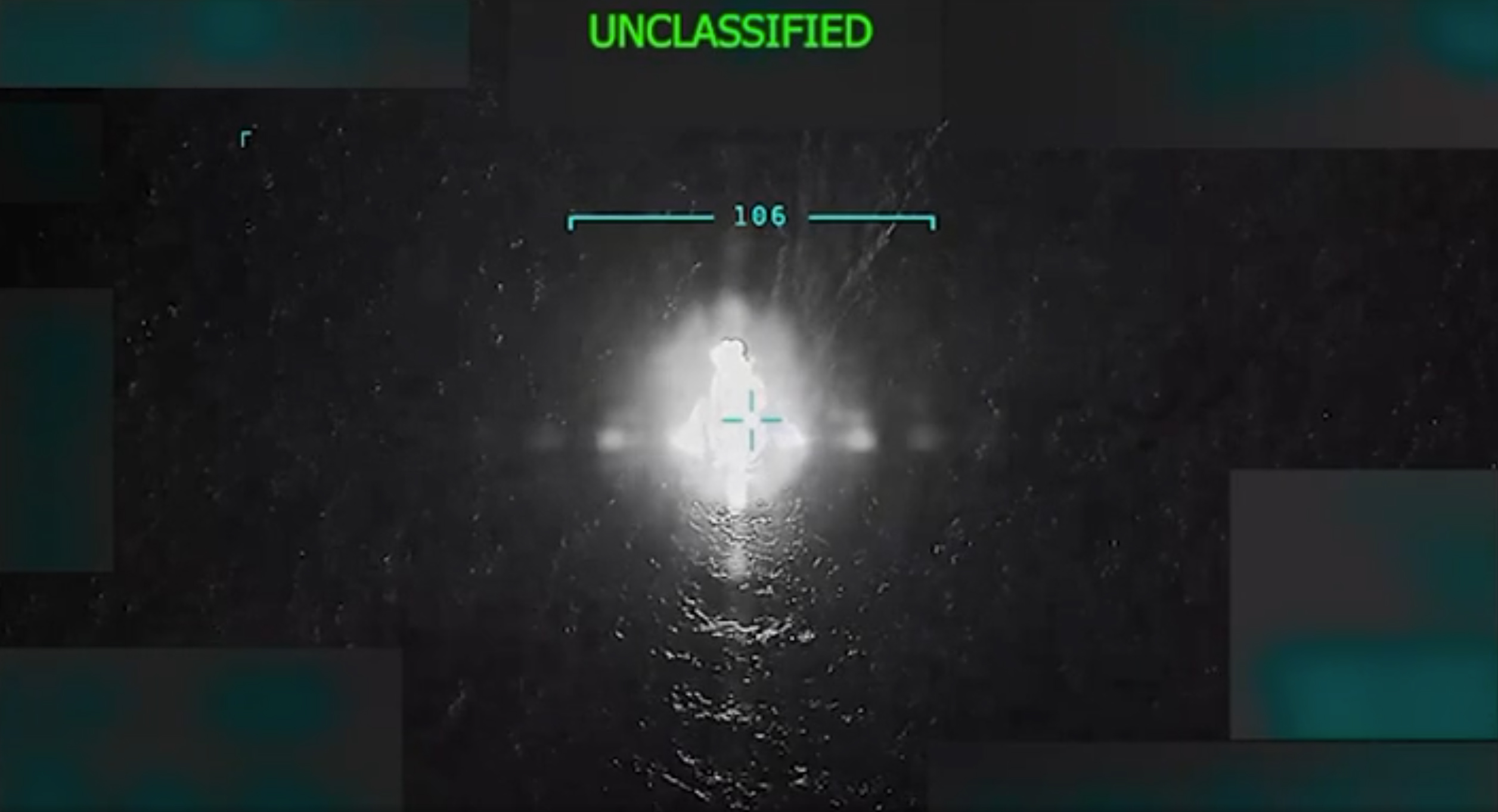 A still frame from a video posted on social media by President Donald Trump shows a boat allegedly transporting illegal narcotics after a lethal strike on Sept. 2, through U.S. military imagery.
