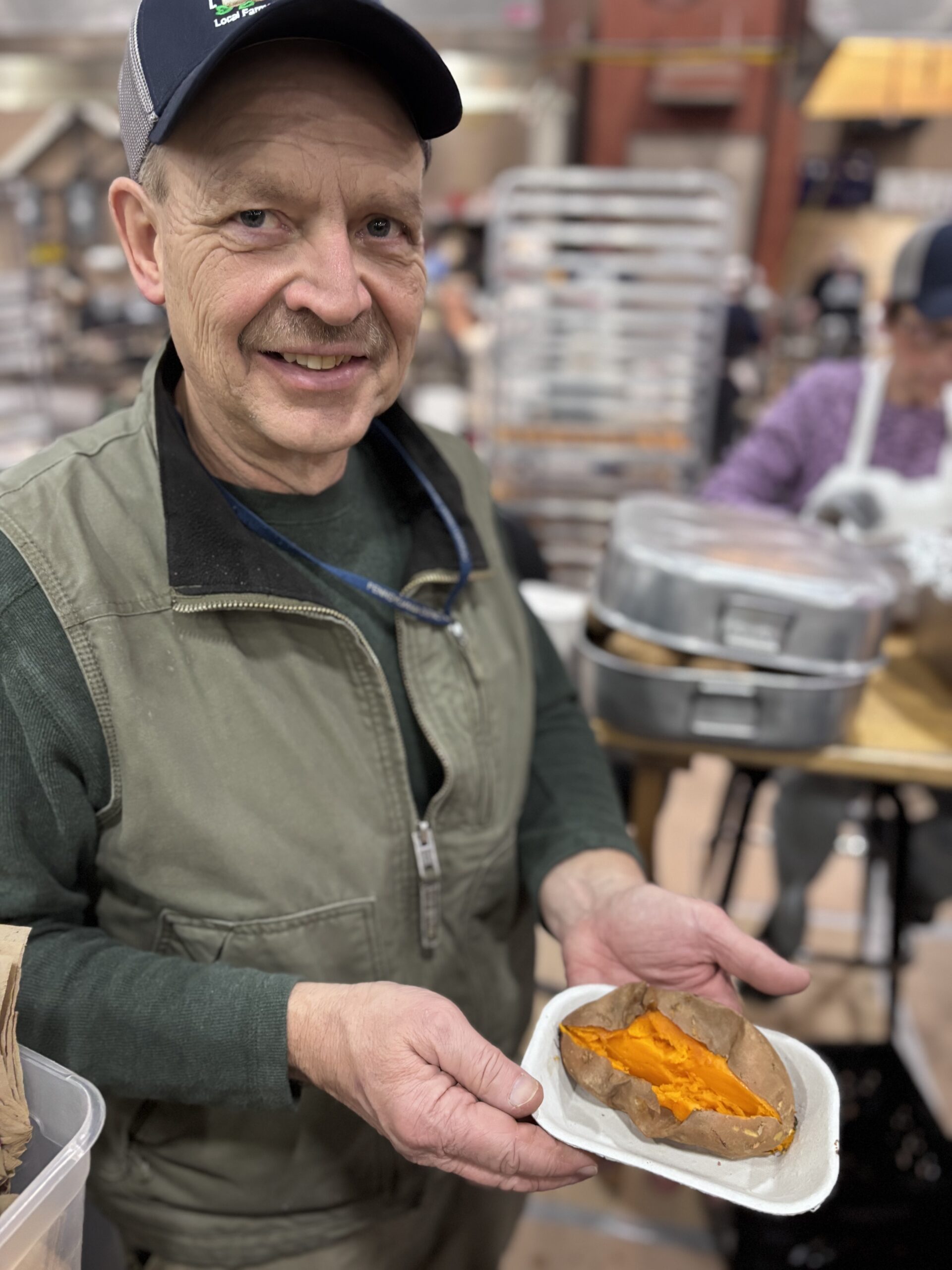 The potato growers told me they sell 6 tons of baking potatoes at the show, plus 8 to 10 tons for french fries, and about 1.5 tons of sweet potatoes.
