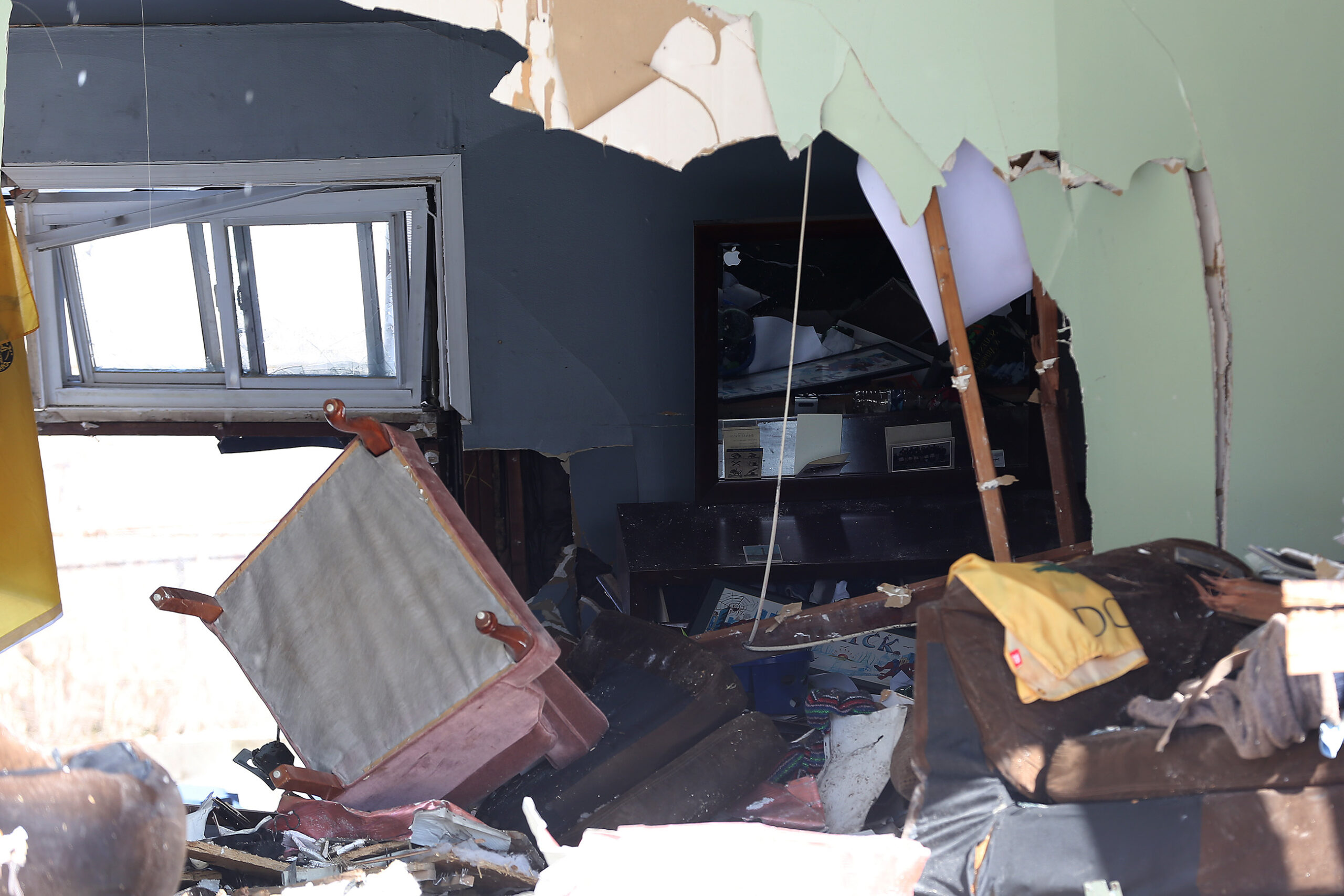 Raymond couldn’t find his wife. But he heard faint sounds coming from the undercarriage of the car, which had come to rest in their son’s bedroom.