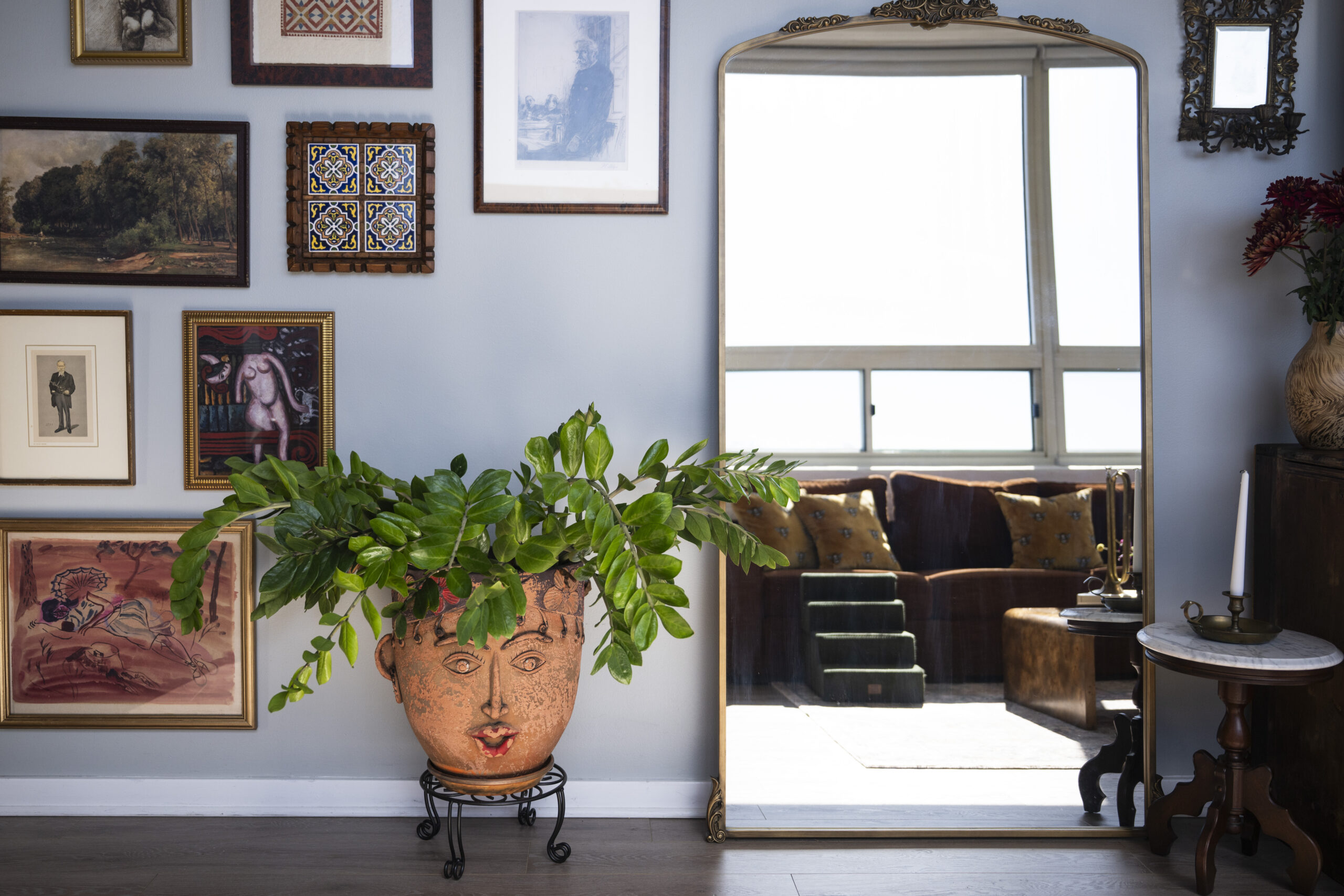 “My goal is to be authentically unique,” he said. He plays with patterns and textures and describes his apartment’s aesthetic as maximalist and eclectic.