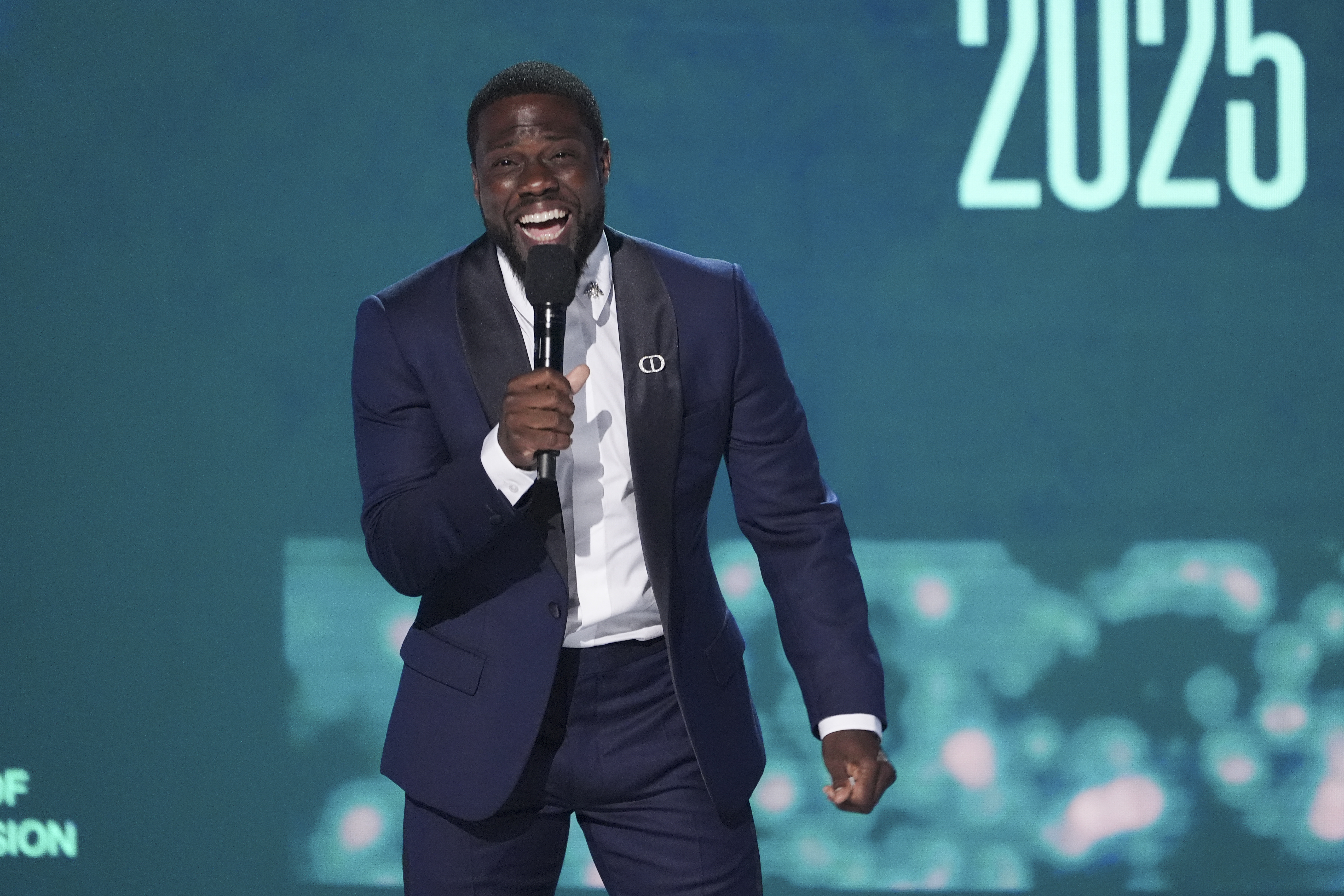 Host Kevin Hart speaks during the BET Awards on Monday, June 9, 2025, at the Peacock Theater in Los Angeles.