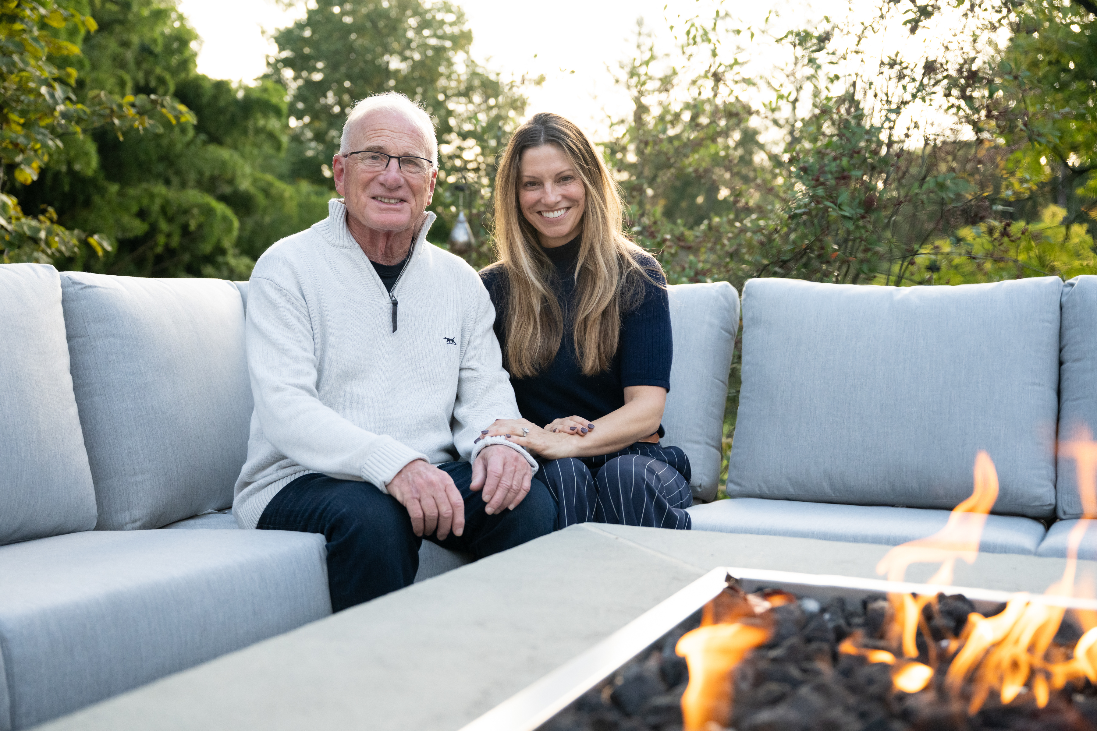 The outdoor kitchen, where Spicer and Peikin prefer to cook dinner when the weather allows.Steve Peikin and Amy Spicer pose for a portrait in their backyard.